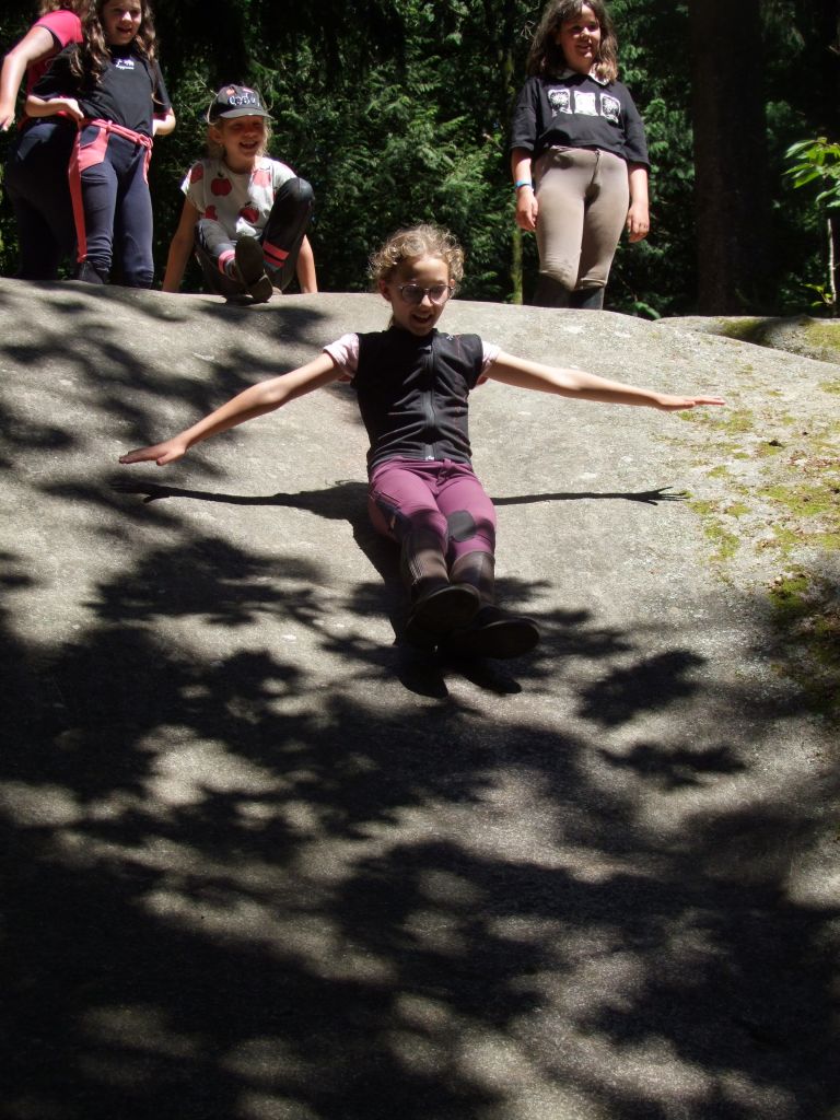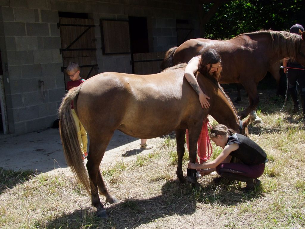 Une super rando durant ce week-end du 17 et 18 juillet: 60 kms parcourus en deux jours. Des cavalières au top : Olga malheureusement adulte orpheline, Sarah, Charlotte, Rose, petite et grande Stella, et Mila.