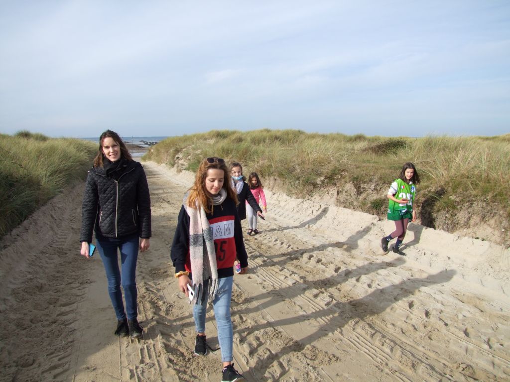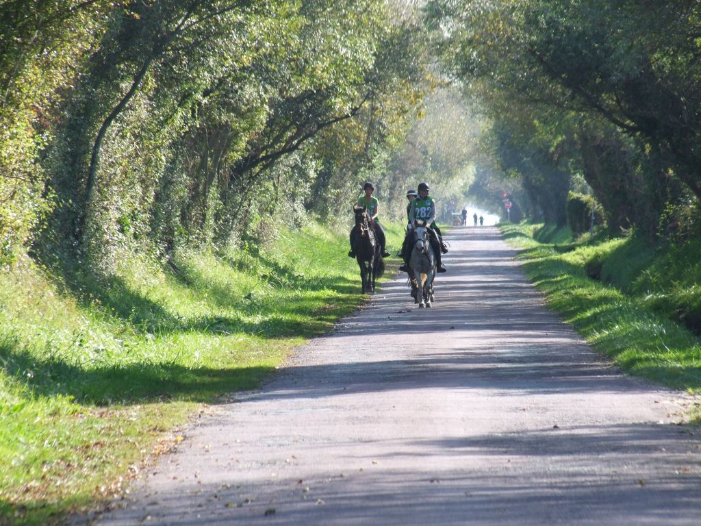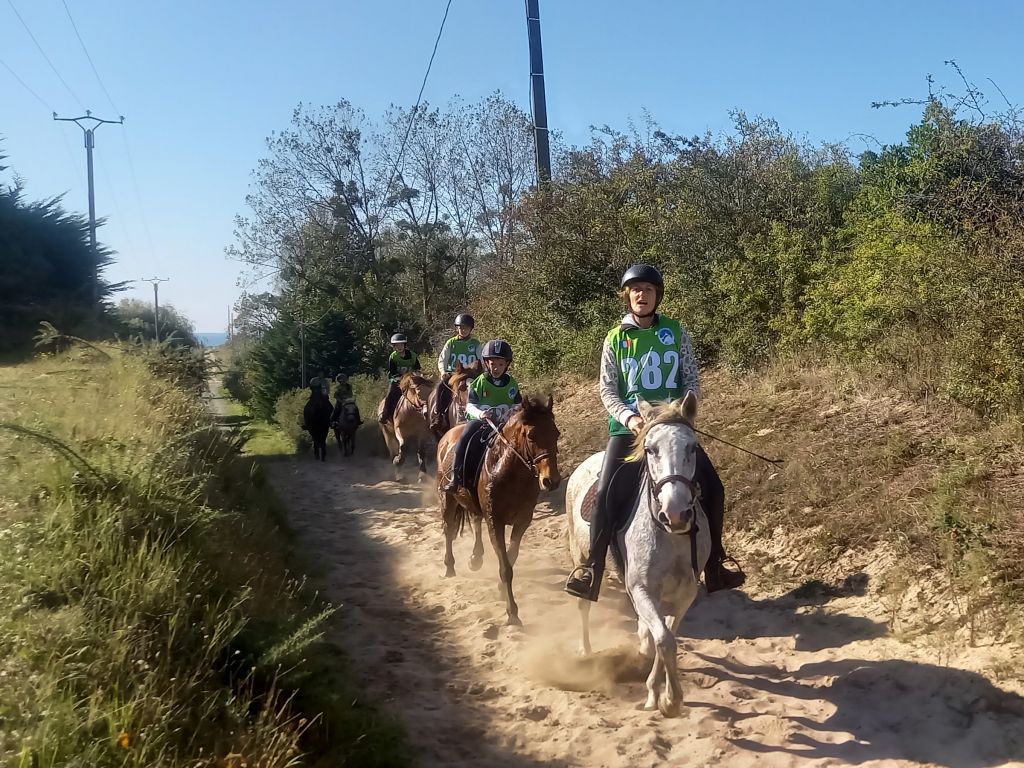 Une équipe bien en selle, il le fallait avec les 5 kms de plage... Un Toto très bien géré par Erwenn ... et les autres au top. Peu de galops sur la plage, j'ai préféré assurer la sécurité. En revanche, de beaux petits sentiers sinueux dans les dunes puis les superbes chemins verts nous ont permis de galoper. Quel délice !