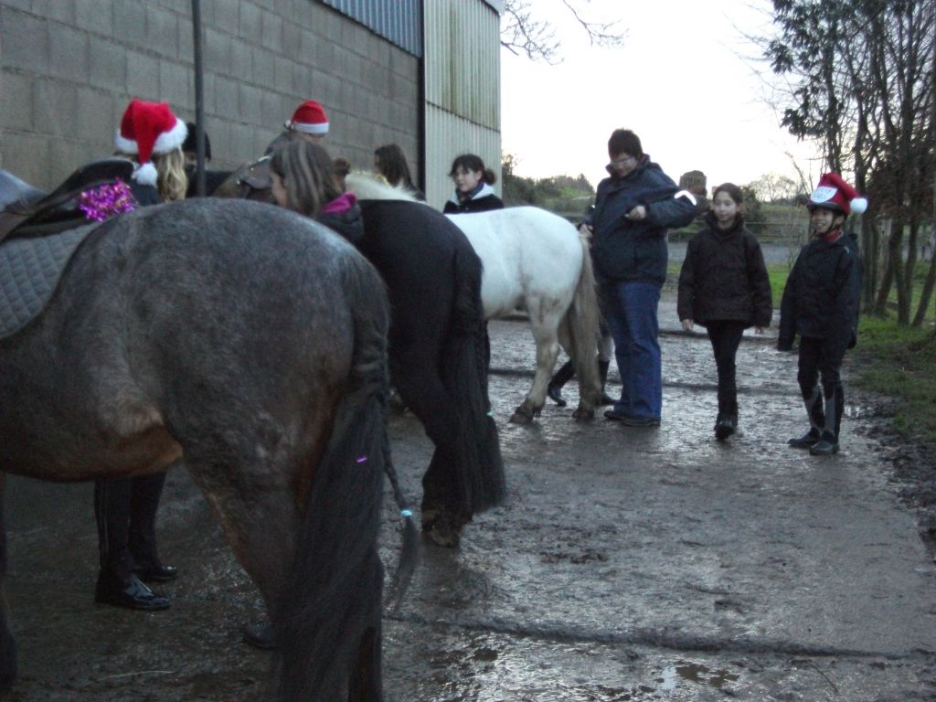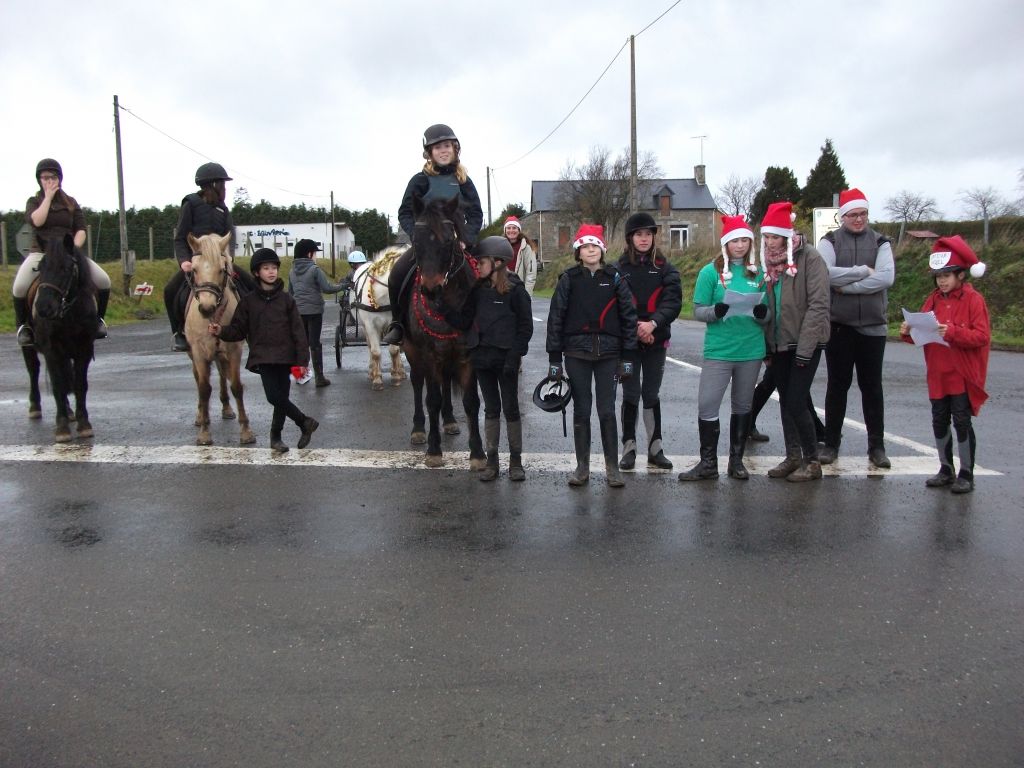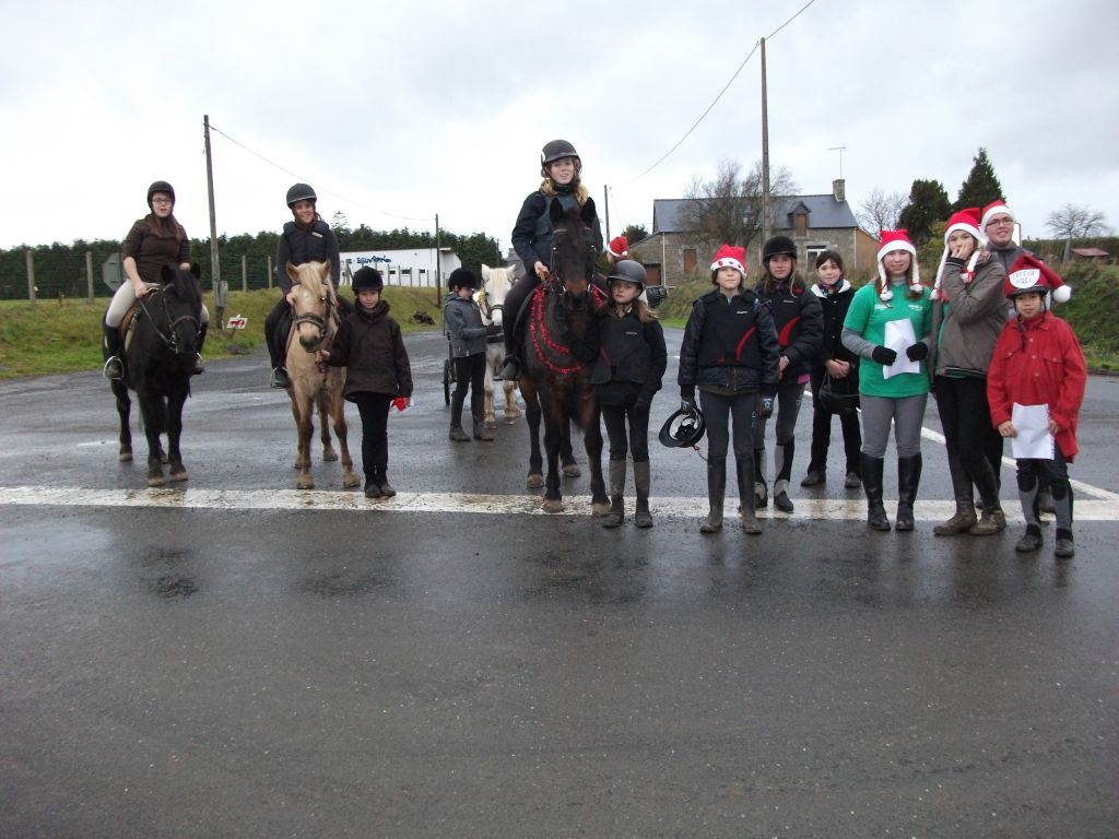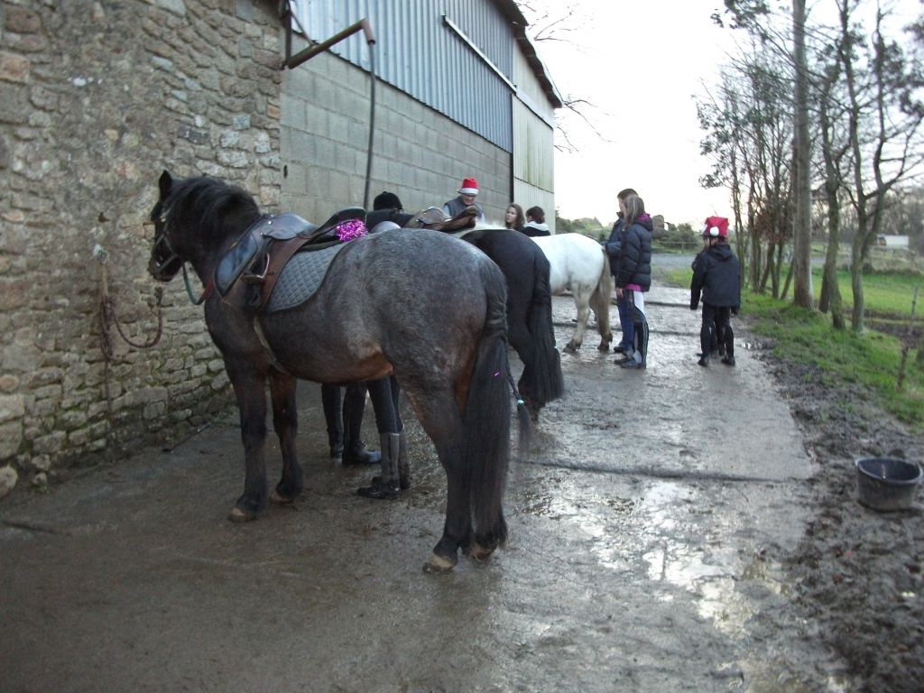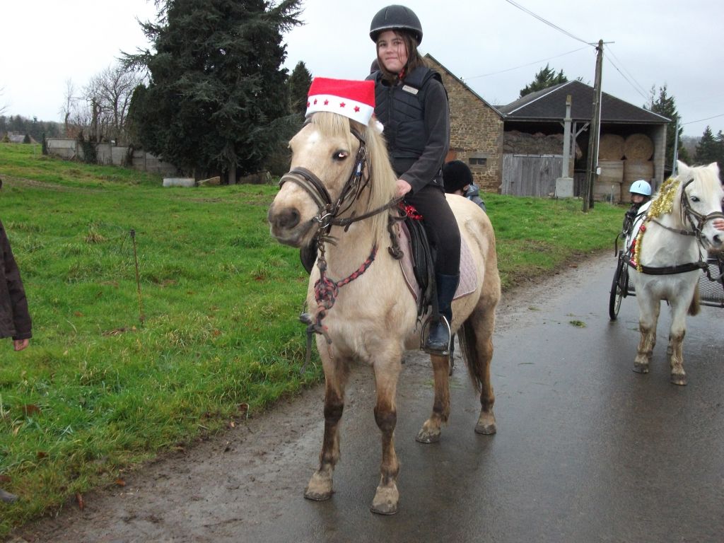 Dimanche 22 décembre, nous sommes partis faire une balade de Noël en compagnie de cavaliers du club, de cavaliers de la section sportive et d'encadrants ( Nono, Violette, Maxime, Anne, Frédérique...) que je remercie vivement. Bien sûr, quelques poneys participaient à cette balade : Jet, Katia, Loustic et Junior en calèche. Bravo aux décorations mises en valeur par chacun.  Jet avait une superbe guirlande en forme de collier sur le poitrail ! Juju était très classe avec sa crinière tressée et ses décos.