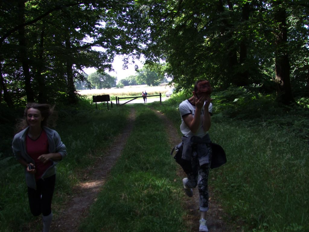 Une très belle course avec des sentiers verdoyants mais avec quelques difficultés que nous avons heureusement surmontées. Première difficulté : les grandes allées là où d'habitude je n'hésite pas à galoper pour gagner du temps me semblaient trop justes pour Célestin d'autant plus que la ponette toussait un peu en début de course donc j'ai choisi le trot actif avec quelques foulées de galop en fin d'allées. Nous étions en 11 kms/h à ce moment-là. La seconde difficulté était celle des gués : n'oublions pas, le site s'appelle le gué au merle ! Je savais que certains poneys comme Katia étaient capables de sauter fort et il fallait éviter la chute ... J'ai fait descendre Célestin et Léna pour la sécurité, Katia a effectivement fait un gros saut sur le premier gué car à ma grande surprise, il restait encore 2 gués à franchir, avec Prune et Sissi bien décidées à prendre leur temps !! Au franchissement du 3ème gué, nous étions complètement à la ramasse par rapport au timing, 5 mn de retard donc environ à 9 kms/h ( nous devions arriver en 10/12 ). Là obligée de passer la seconde. Heureusement, la petite poignée magique que Célestin avait sur sa selle, l'a bien aidé. La ponette était top, les autres cavaliers aussi ! 3ème difficulté : petite chute de Léna qui perd l'équilibre dans une descente ! petite cavalière discrète mais avec un fort caractère heureusement. Elle remonte rapidement sans même broncher.