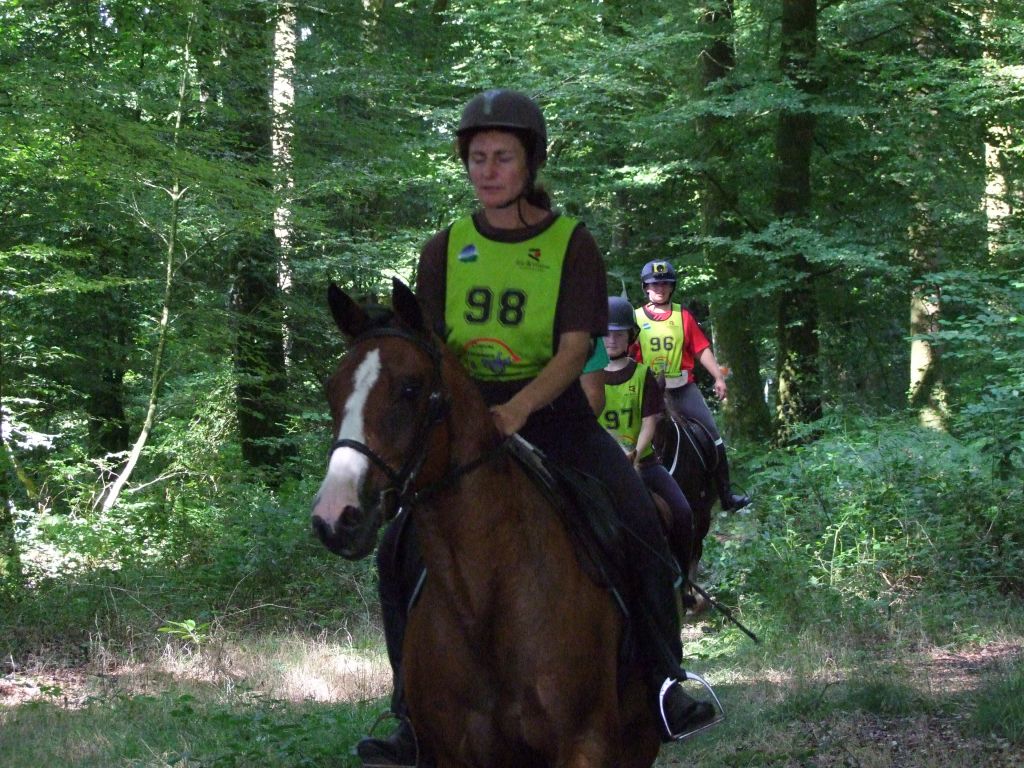 c est vrai que les 3 premiers kilomètres environ se passèrent tranquillement mais ces fameux gués nous ont bien retardés en sachant que ç est Prune et moi qui furent les plus hésitantes... Enfin surtout Prune au 1er qui ne cessait de reculer... Obliger de descendre comme les enfants ...