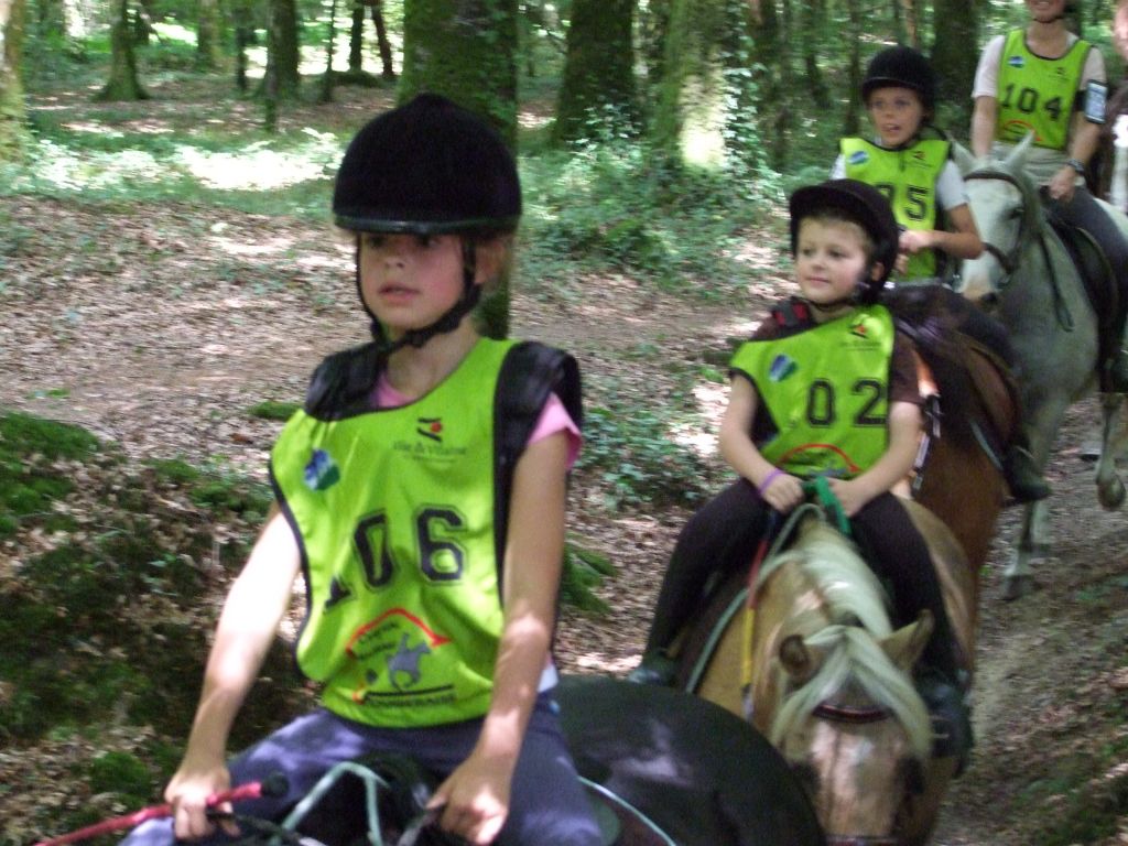 Passons à la deuxième équipe : Un adorable cocktail d'adultes et de très jeunes cavaliers : Léna 8 ans et Maman ( Laëtitia ) au rendez-vous, Léna avec Loustic et Maman avec Prune, Moranne 9 ans ( qui voulait participer avec Laurence ) avec Tornado, Laurence ( qui voulait participer avec Célestin ) avec Sissi et Célestin avec Maman ( moi-même pour les lecteurs qui ne connaissent pas la famille ); Célestin 6 ans montait Katia, la ponette de référence pour les poids plumes et les très jeunes cavaliers. Côté adultes, on s'abstiendra pour les âges.