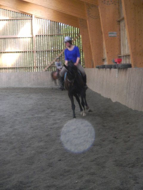 Venus était au travail avec Helo. Quelle maîtrise. Ils faisaient bonne équipe tous les 2. Elle a aussi gentiment accepté de faire la débutante pour tester ses réactions. Plutôt cool sauf lorsqu'on laisse les rênes laches. Là il part au super galop! Le cours était axé technique avec le passage du pas au galop. Vénus y arrive sans problème. Opaline était au taquet mais Kiki tenait bien sa jument en main. Tranquille le gars!!! Prêt pour la course d'endurance du lendemain. Caro sur Piper, tranquille. Du beau travail a été accompli avec la demoiselle qui était tellement peureuse il y a encore quelques semaines. Quant aux autres dont j'oublie les prénoms et le nom des chevaux (je m'en excuse), pareil, quelle maîtrise!!! Après le cours, Helo m'a proposée d'aller en carrière avec Venus pour le lâcher et voir comment il réagit en liberté. Elle l'a amadoué avec de l'herbe et cela a marché. Il la suivait puis elle lui demanda des départs au trôt ou galop et Monsieur a obéit. Elle a fait celle qui l'ignorait, qui ne voulait pas le voir, et il partait dans son coin. Après elle le faisait stopper et il obéissait. Il est vraiment bien ce cheval, tout le monde le dit. C'est super mais il faut qu'il apprenne à nous accepter nous les débutants et nous en tant que famille. On dit que le cheval choisit son cavalier. En voyant Hello avec lui, j'ai commencé à me dire qu'il était en train de la choisir. Et moi alors!!!! Je sais pertinemment qu'il faut être patient mais vivement le moment où on montera tous dessus sans surprise et avec maitrise. Je pense qu'une bonne année d'adaptation avec nous est nécessaire et j'ai réellement envie de faire le travail qu'Helo a fait devant moi. Je pense que c'est important pour nous mettre en confiance lui et nous.Et puis on va aussi progresser techniquement....