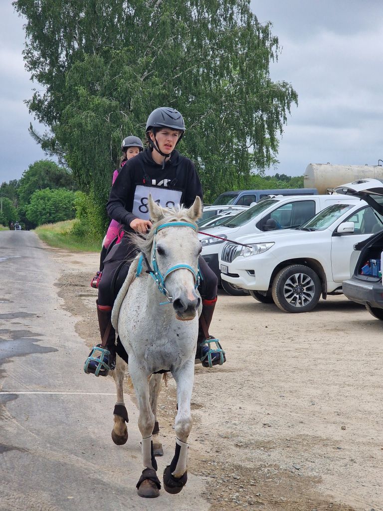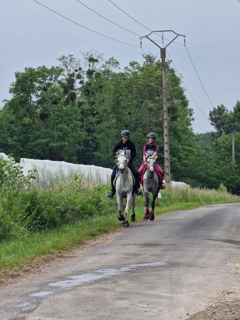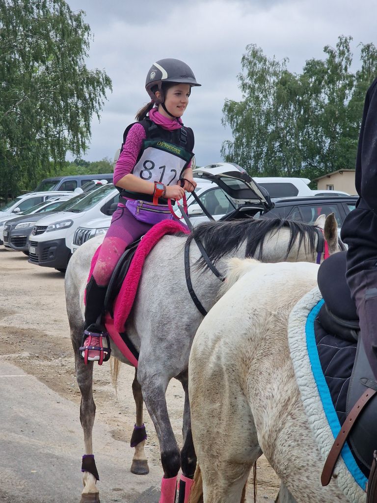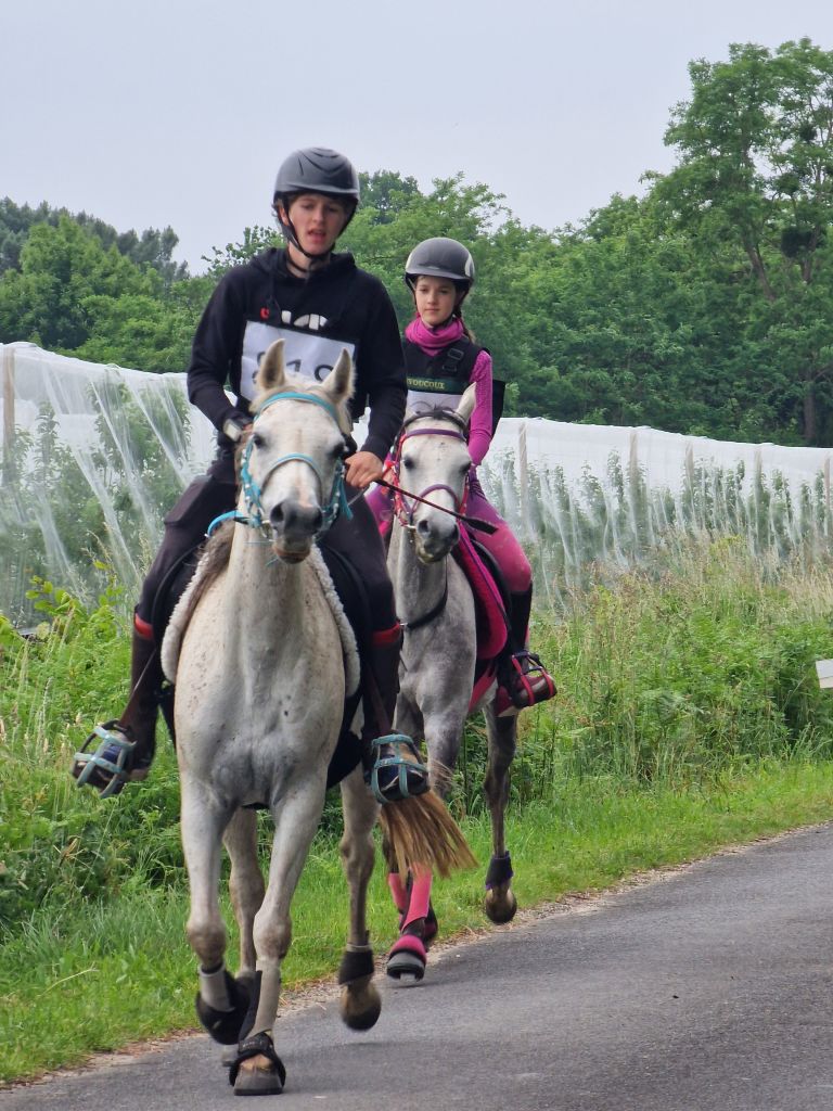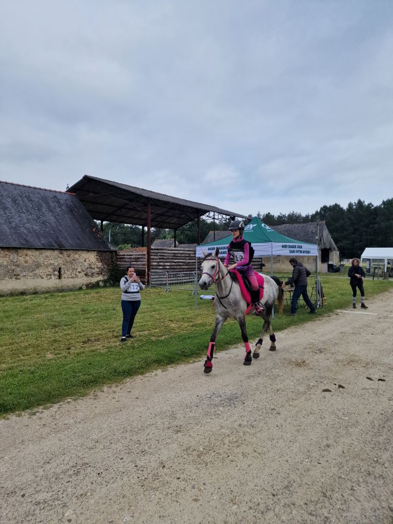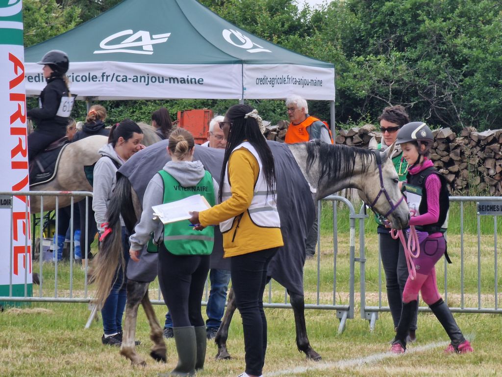 C'était effectivement une première pour Mila et Jalila : première course de 80km en temps imposé (à 16km/h). La compétition se déroulait à Seiches sur le Loir, donc quelques 150km à parcourir pour rejoindre les excellents terrains sablonneux de la région Angevine. On est parti à 4h30 !! avec nos athlètes : Mila & Jalila et Célestin & Charifa. Jalila un peu stressée, car elle sait maintenant qu'un lever matinal signifie une journée de galops...