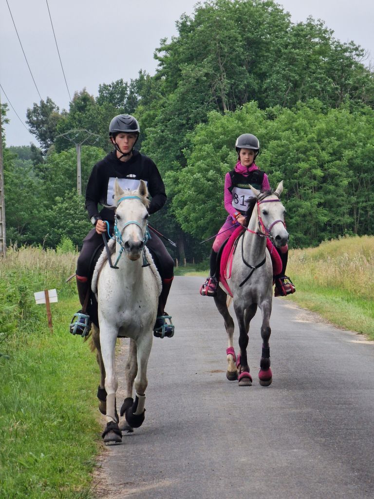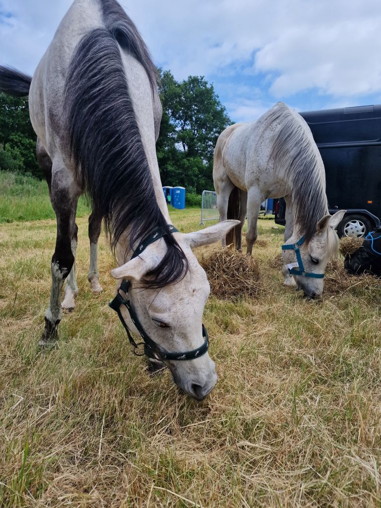 Mais à présent, il faut récupérer ! Les asisstants se démènent : il faut refroidir les juments mais pas trop ! Jalila n'a quasiment pas bu sur les 80km : on s'inquiète de son état de déshydratation : il faut marcher , ne pas arrêter les muscles : on se rappelle que Jalila avait frolé les crampes lors du championnat des As 2023... Les cardios descendent vite : à 10 min, les juments sont à 45; à 20 min, les cardios sont tombés à 42... Et c'est parti pour la présentation au vetgate : les juments restent côte à côte : verdict : 40 ! Mila et Célestin ont parfaitement calmé leur jument ! C'est parfait !