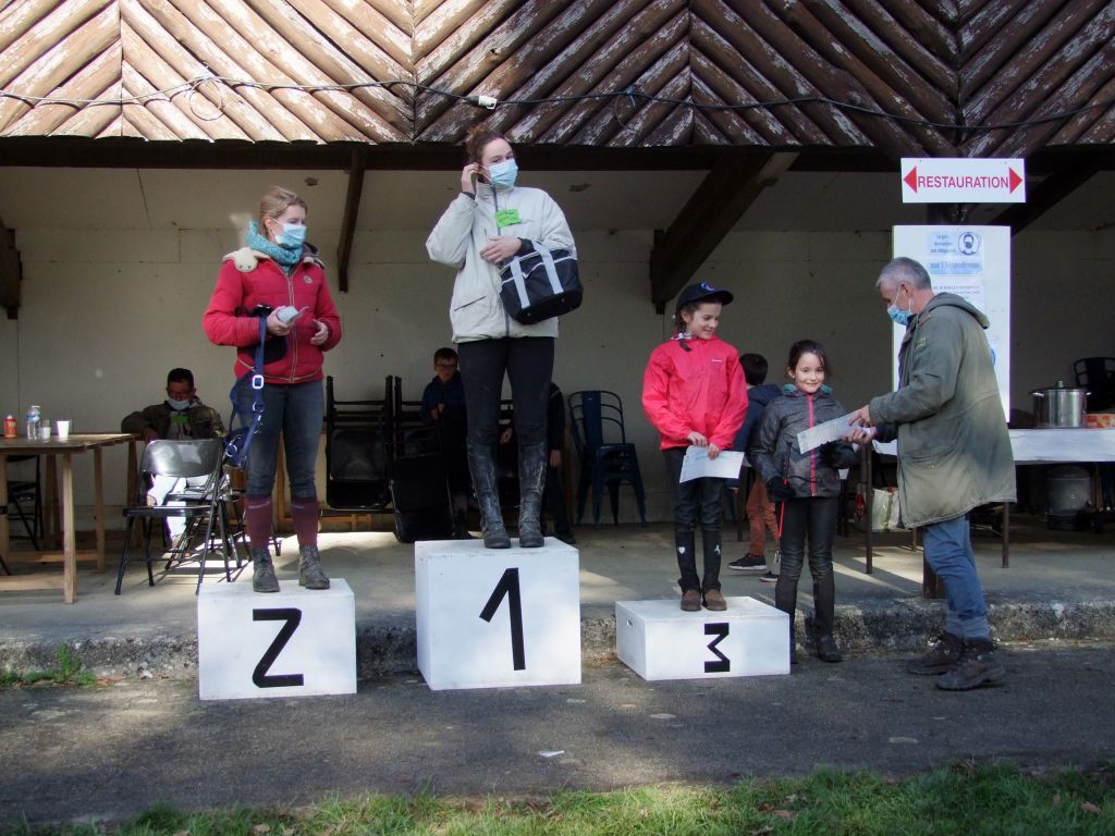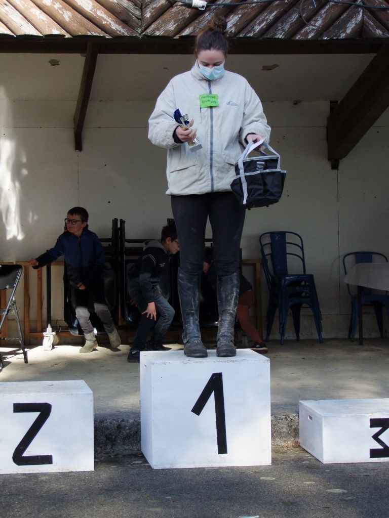 Sans plus tarder, voici les résultats : sur 31 engagés, Violette avec Charifa 1ère, récup à 39, 3ème: Mila avec Prune récup à 40, 4ème: Jade et Sissi récup à 43, 5ème: Alicia et Bimbala récup à 43, 6ème: Alizéa et Tornado récup à 43, 7ème: Lou et Katia récup à 44, 16ème: Julie et Fifty récup à 52, 25ème Christelle et Pif récup à 62, et à mon grand regret: Madame revient boîteuse malgré une belle course avec Aude.