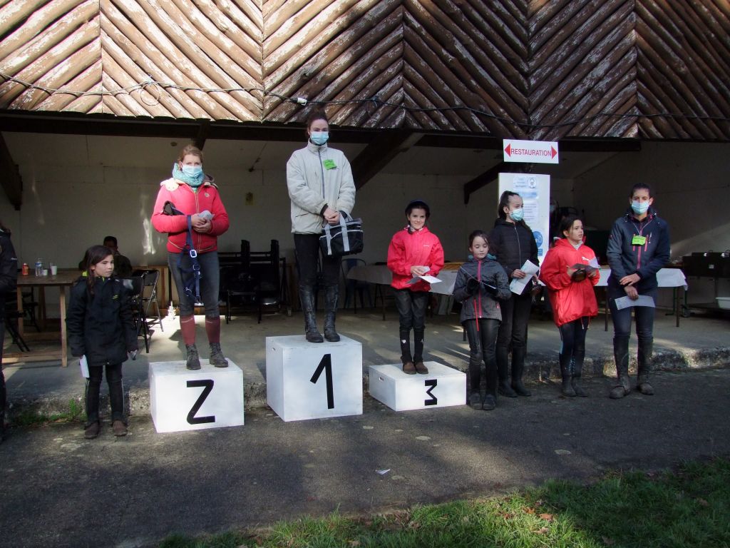 : sur 31 engagés, Violette avec Charifa 1ère, récup à 39, 3ème: Mila avec Prune récup à 40, 4ème: Jade et Sissi récup à 43, 5ème: Alicia et Bimbala récup à 43, 6ème: Alizéa et Tornado récup à 43, 7ème: Lou et Katia récup à 44, 16ème: Julie et Fifty récup à 52, 25ème Christelle et Pif récup à 62, et à mon grand regret: Madame revient boîteuse malgré une belle course avec Aude.