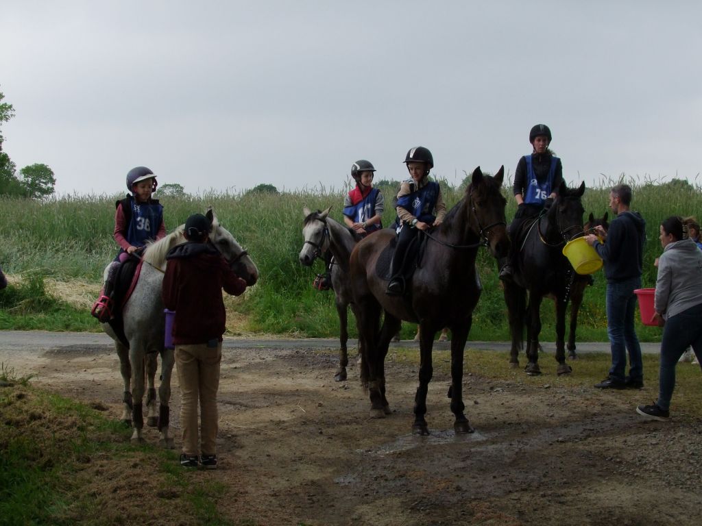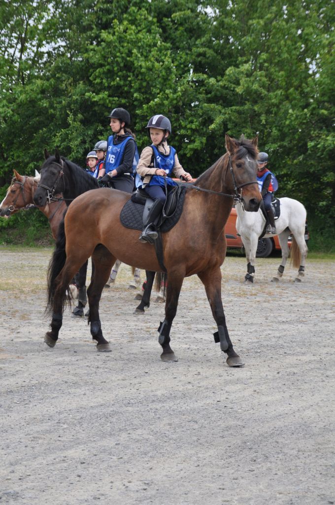 1ère Johane et Sissi cardio à 32, 2ème Erwenn et Oriana cardio à 38, 10ème Louis et Miss cardio à 46, 13ème Julie et Bimbala cardio à 46 ( bravo à toi Julie pour avoir persisté sur les derniers kms ). Une petite déception pour Tornado et sa cavalière, Lou, Toto éliminé pour boiterie, sols un peu caillouteux qui ne font pas bon ménage avec les pieds plats.