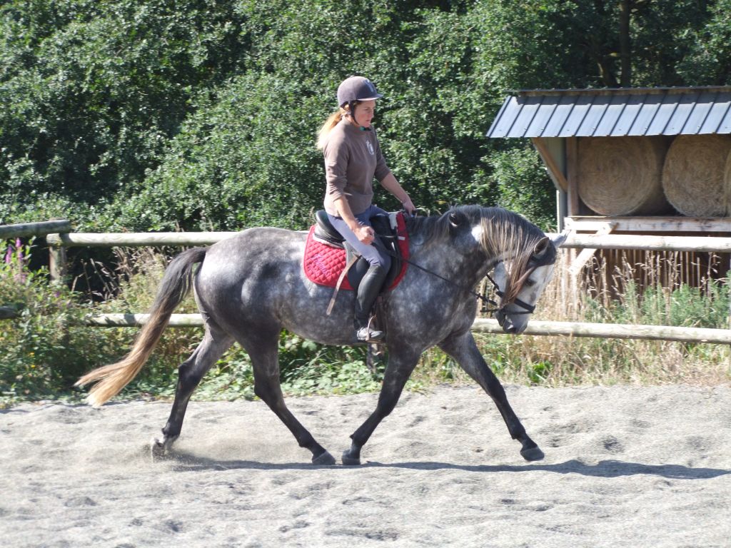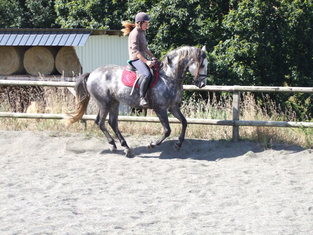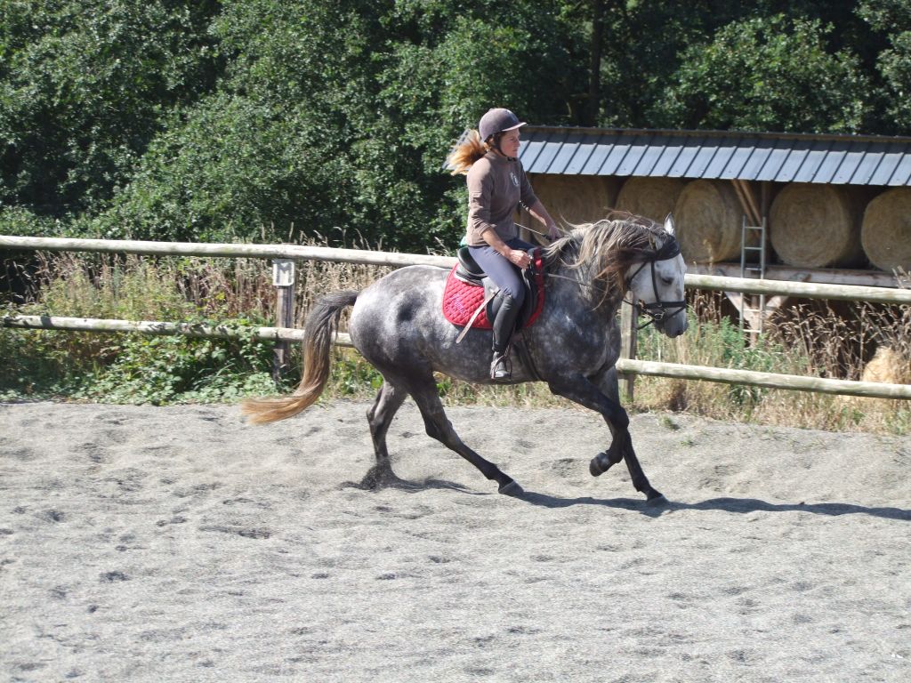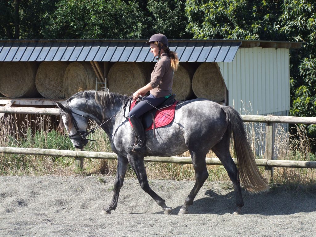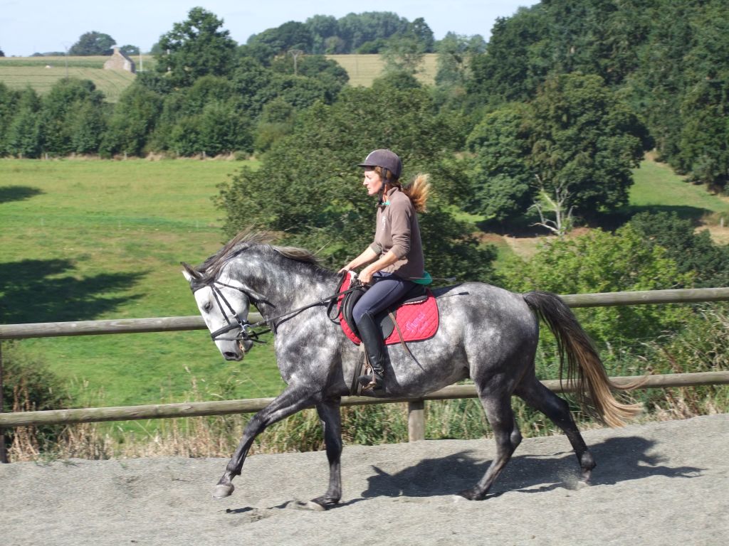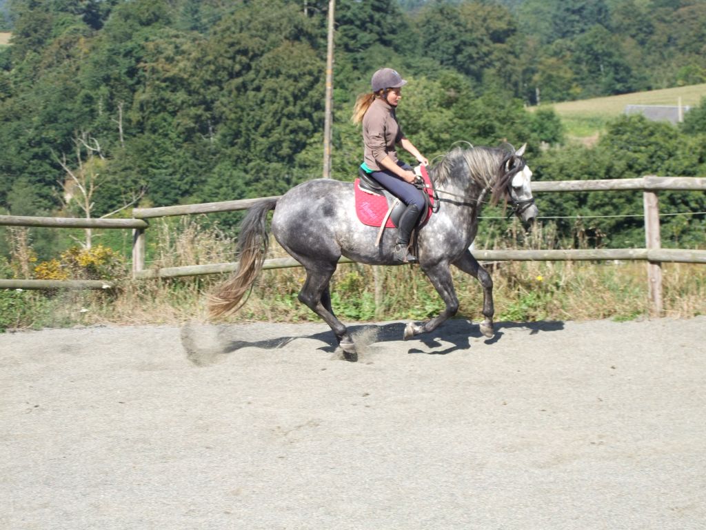 Sous le soleil de cette belle matinée, on voit donc nos deux complices en pleine reprise ! Termi nous a surpris : concentré, à l'écoute, très souvent en place (même un peu encapuchonné en fin de séance... dur la fin des vacances !). A peu près symétrique, il a conservé une incurvation correcte, une allure régulière, et un calme inhabituel ! Serait ce l'âge mûr ?