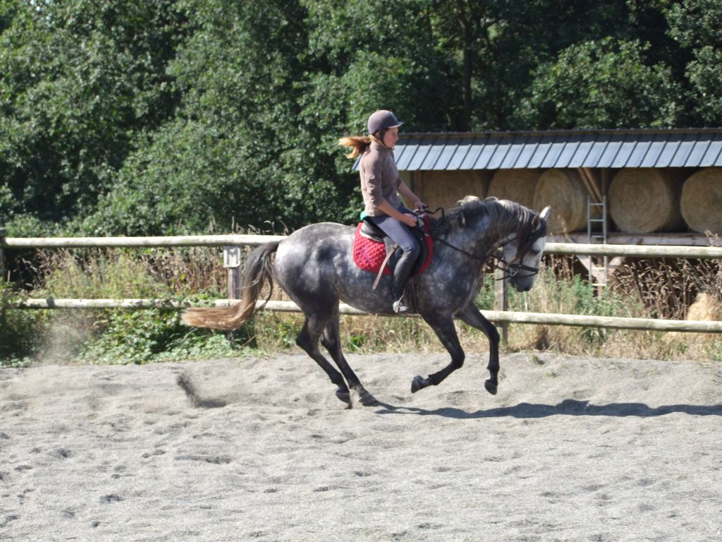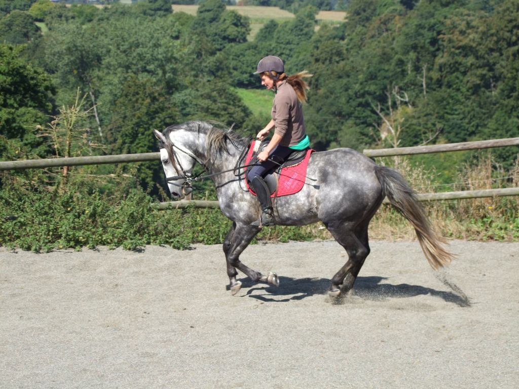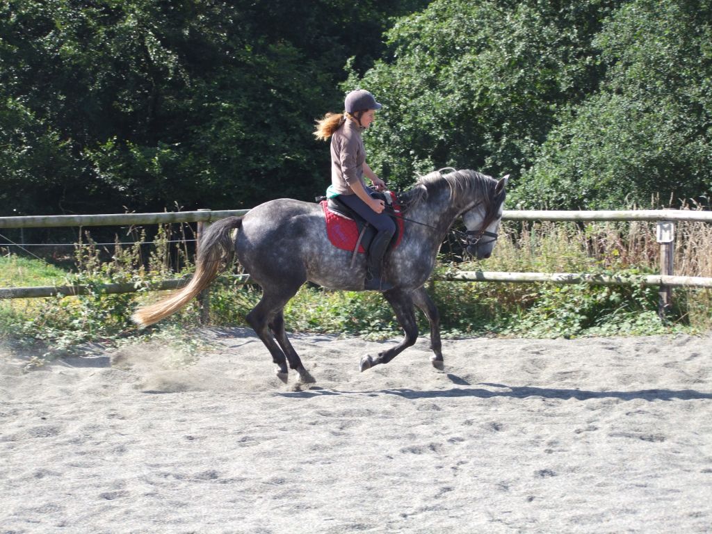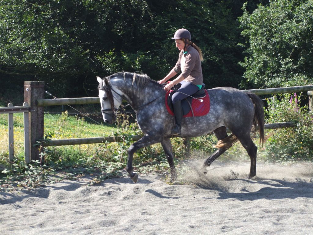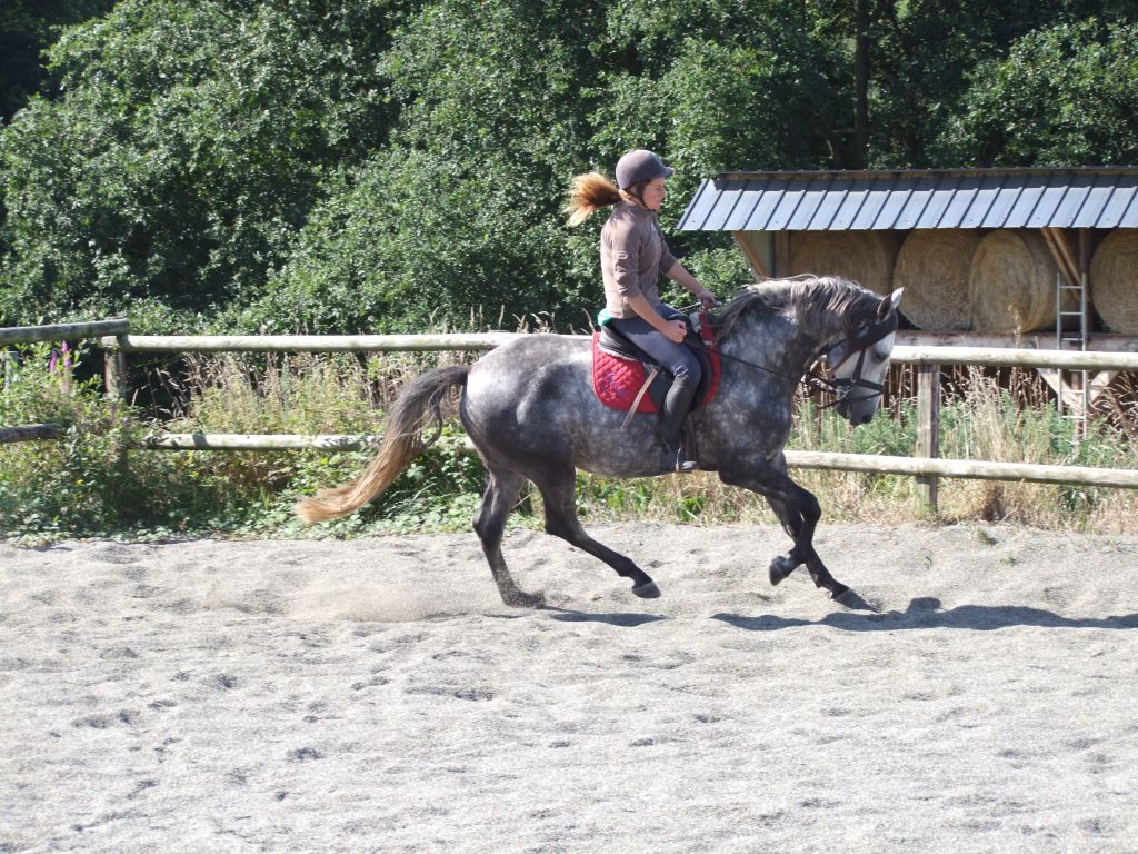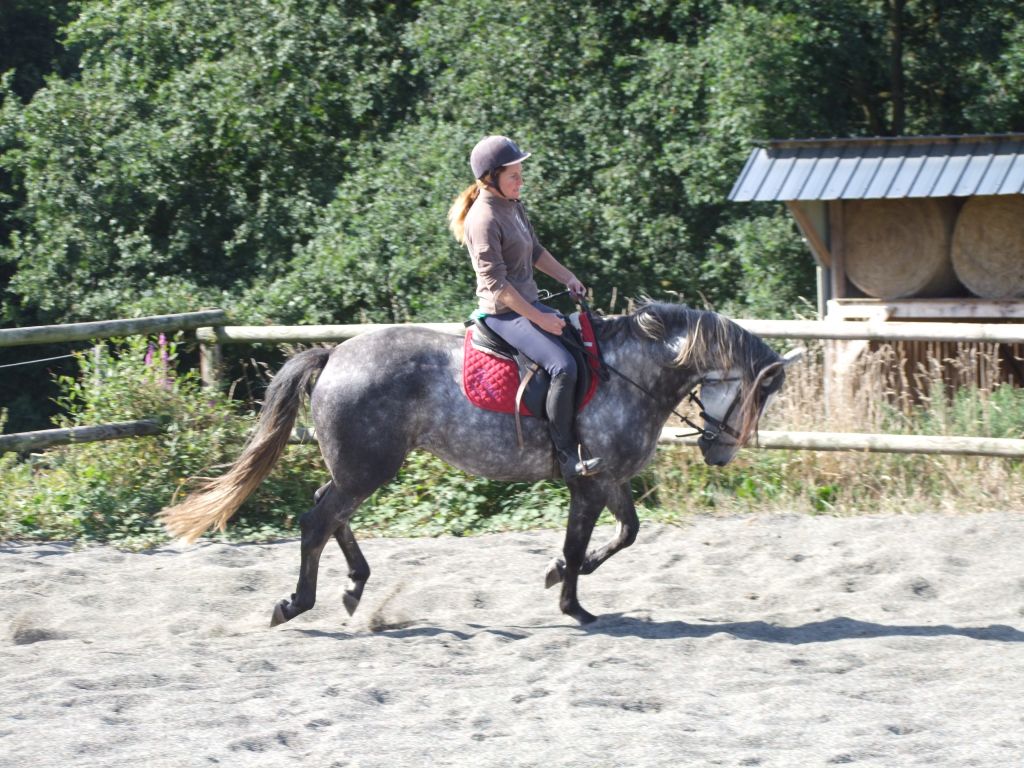 Sous le soleil de cette belle matinée, on voit donc nos deux complices en pleine reprise ! Termi nous a surpris : concentré, à l'écoute, très souvent en place (même un peu encapuchonné en fin de séance... dur la fin des vacances !). A peu près symétrique, il a conservé une incurvation correcte, une allure régulière, et un calme inhabituel ! Serait ce l'âge mûr ?