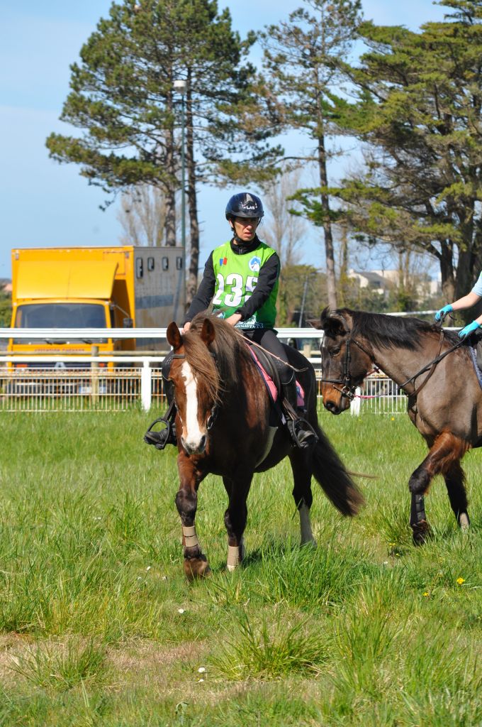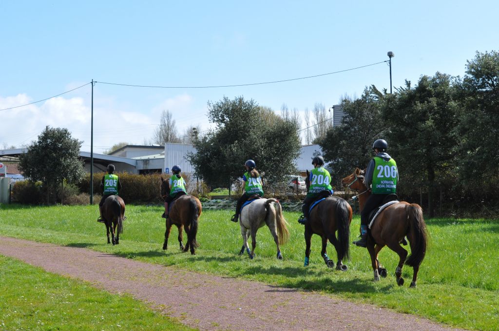 Ce dimanche, nous étions partis sur Agon pour l'endurance de printemps. Plage, dunes, chemins creux... tout un paysage magnifique s'est offert à nos yeux concentrés sur les rythmes de nos chevaux. D'abord légèrement pluvieux, un soleil printanier est venu nous réchauffé la couenne...