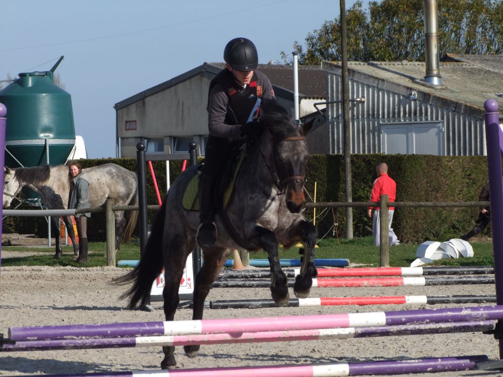 Les deux autres poneys, Tornado et Katia ont été plus volontaires. Tornado rafle 2 sans faute sur 3 parcours dans la 60, un avec Rose et l'autre avec Sarah, encore un peu de travail cependant sur la prise d'options pour avoir des classements. Quant à Katia, elle nous a ébloui par sa franchise, son style et sa légèreté. Un grand merci à Caro pour l'avoir sortie pour la toute première fois ce qui a permis à Quentin de faire presque un sans faute (une erreur de parcours avec un obstacle oublié) et à Gabrielle de faire son premier concours à l'extérieur. Le troisième sans faute revient à Aurore avec Mister, couple très stylé dommage pas de classement (Grr).