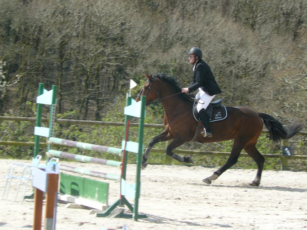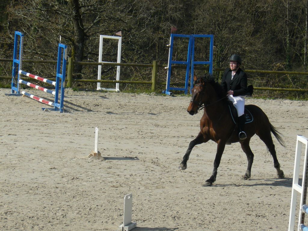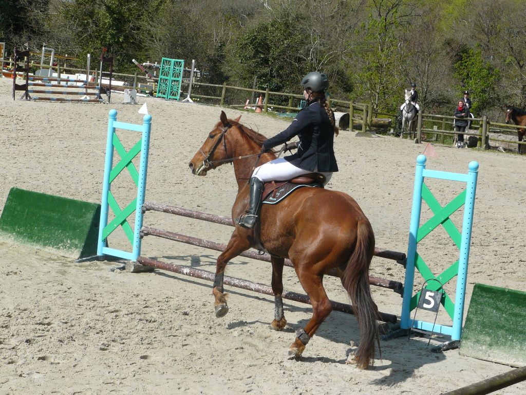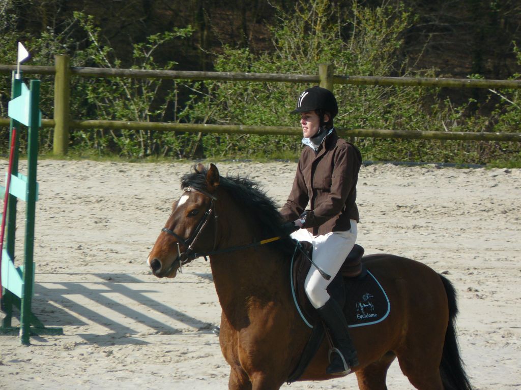 Enchaînement sur la prépa 75 avec Choé et Biblio, Maxime et Thaïs, Emilie et Biblio, et Sébastien et Cybelle ! 2 petites barres chacune pour Emilie et Chloé avec un Biblio pas très démonstratif dans ses sauts mais rappelons-le : 5 ans et 2ème concours.Quant à Maxime, bravo pour son sans faute et superbe tour de notre jeune Cybelle ( 4 ans et tout juste débourrée ) avec Sébastien ! Maxime et Zib terminent 1ers, Emilie et Chloé 5èmes sur 7 participants.