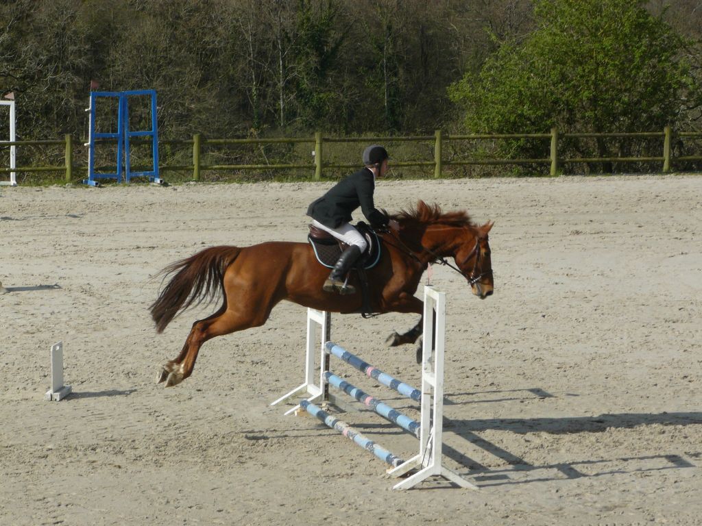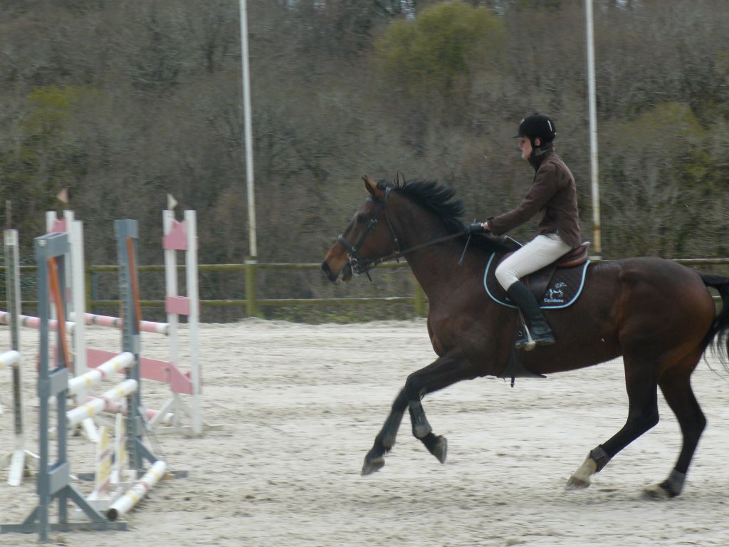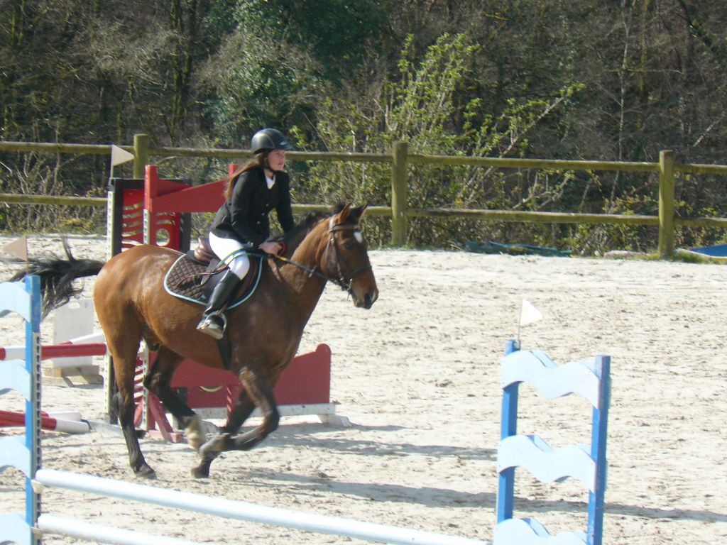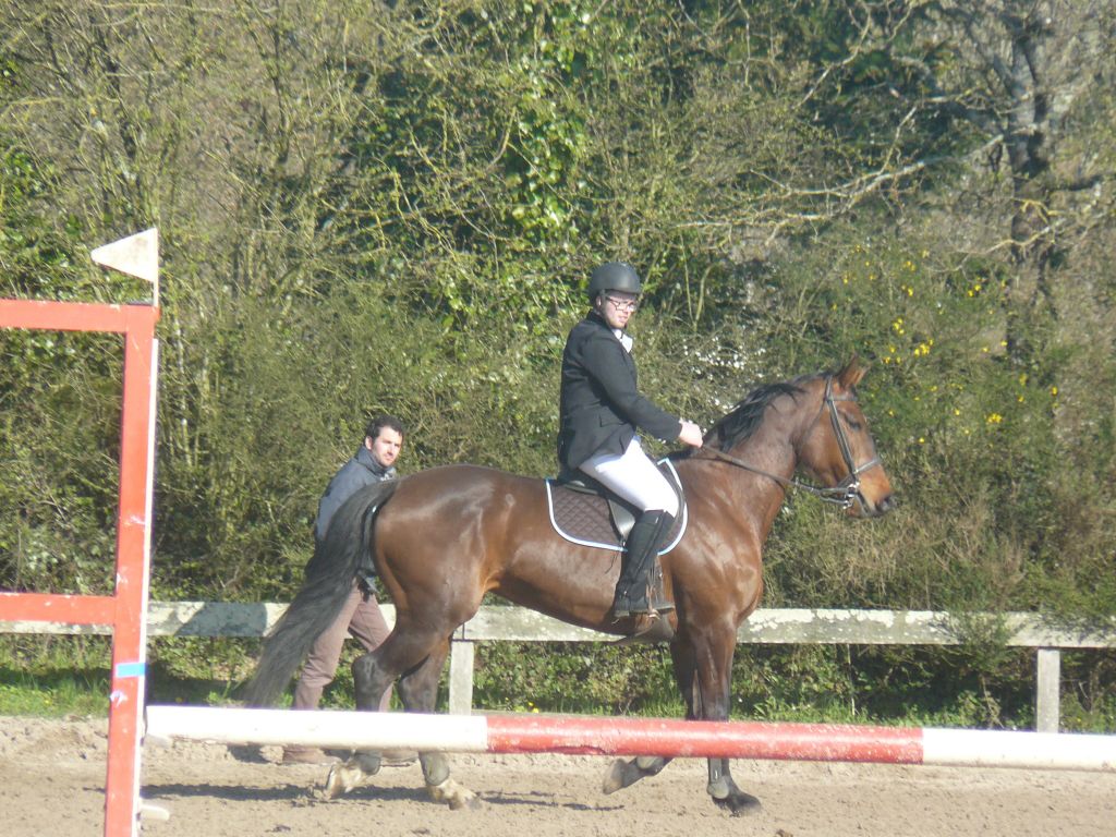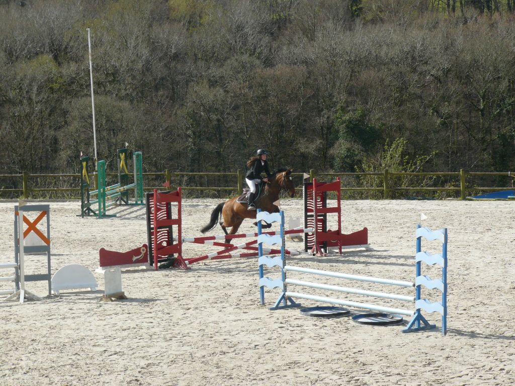 Enchaînement sur la prépa 75 avec Choé et Biblio, Maxime et Thaïs, Emilie et Biblio, et Sébastien et Cybelle ! 2 petites barres chacune pour Emilie et Chloé avec un Biblio pas très démonstratif dans ses sauts mais rappelons-le : 5 ans et 2ème concours.Quant à Maxime, bravo pour son sans faute et superbe tour de notre jeune Cybelle ( 4 ans et tout juste débourrée ) avec Sébastien ! Maxime et Zib terminent 1ers, Emilie et Chloé 5èmes sur 7 participants.