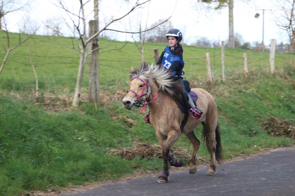 Sur 23 cavaliers club 2: 1ère Alicia et Oriana récup à 36, 2nd Stella et Prune récup à 37, 14 Mila et Gamine récup à 52, 22ème Enora et Bahia récup à 62 avec le mérite de monter Bahia sur sa première 20 kms, ponette qui a eu un super comportement grâce au calme d'Enora. C'est un grand pas en avant pour Bahia. Merci Enora !! Bravo aux autres cavalières qui ont été top sur la course !!