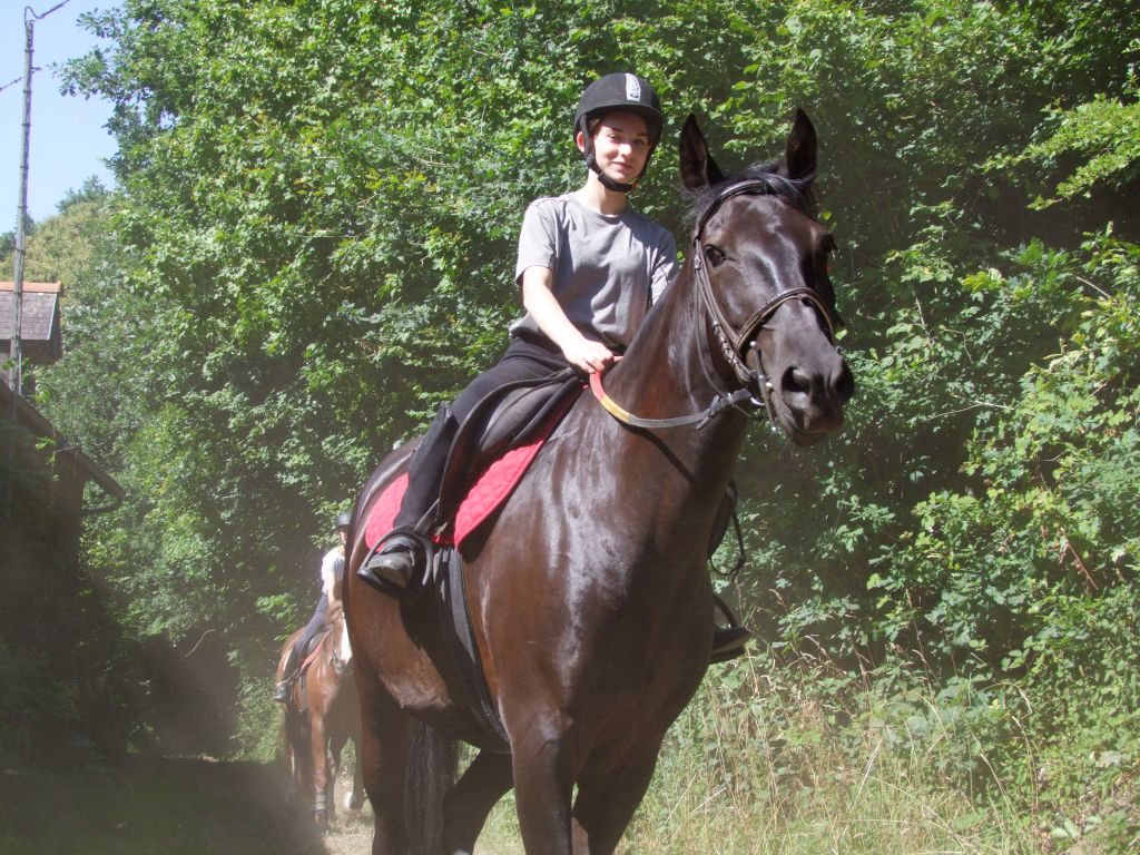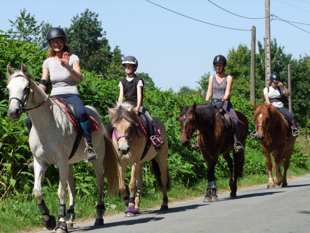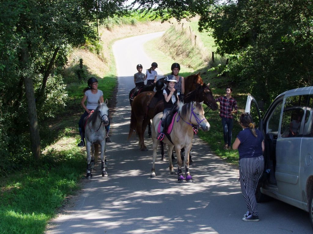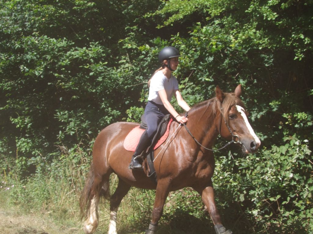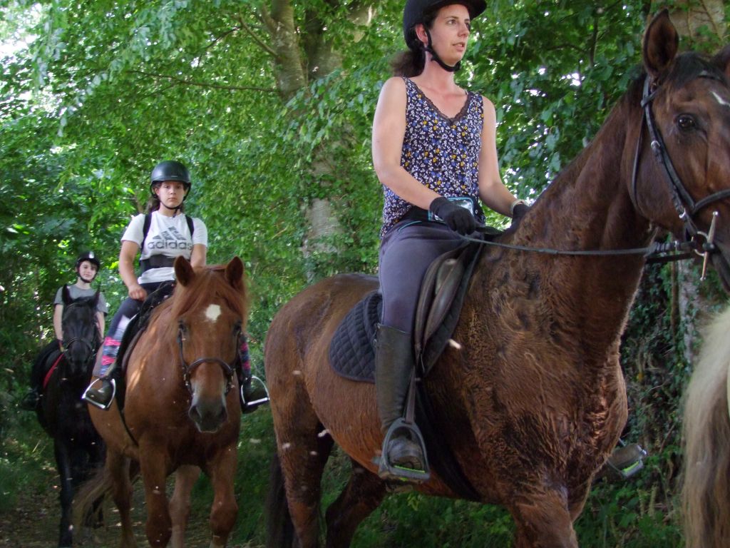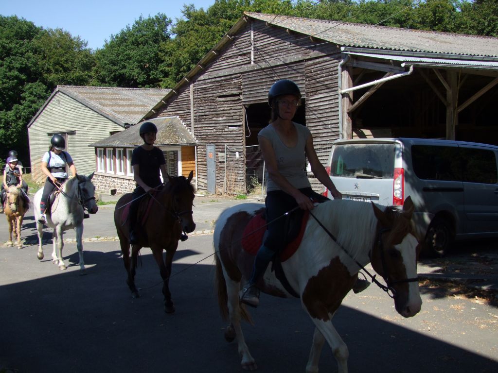 Un petit groupe parfait, pour des chevaux parfaits, dans une ambiance parfaite, sous un soleil parfait, a chevauché les chemins bucoliques de St Georges le samedi ainsi que la forêt secréte de Fougères le dimanche. A 10h30, nous voici en route avec ma fois une équipe bien sympathique composée de Mila avec Gamine, Lucie avec Bimbala, Eva avec Azur, Julie avec Oriana et Léana avec Sissi. Le tout chaperonné par Chacha !!