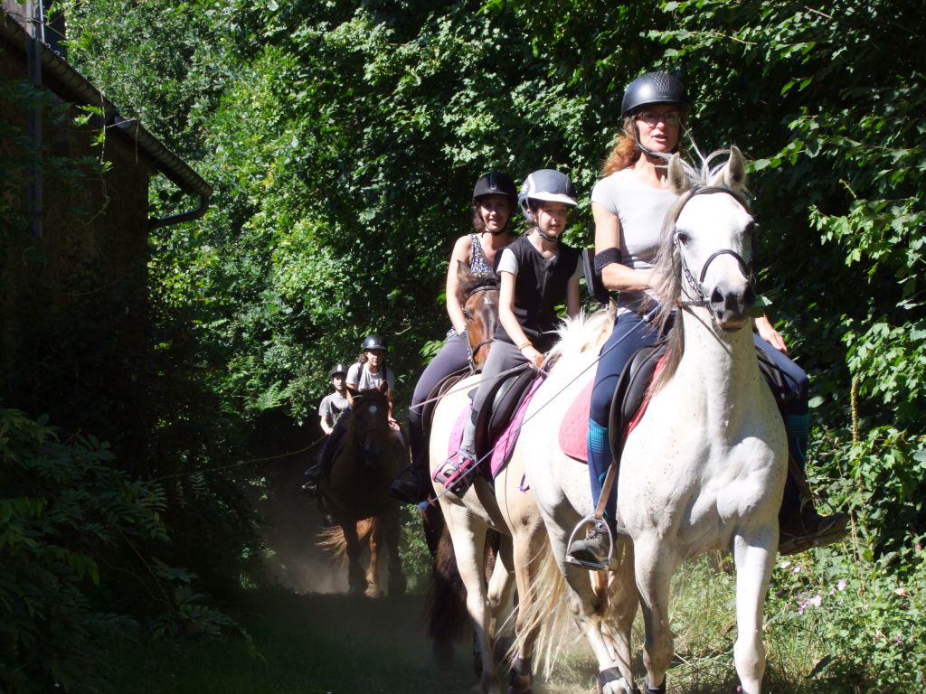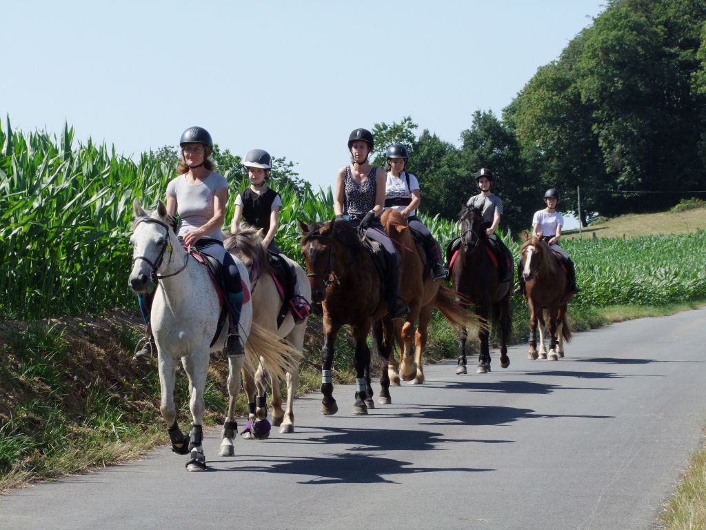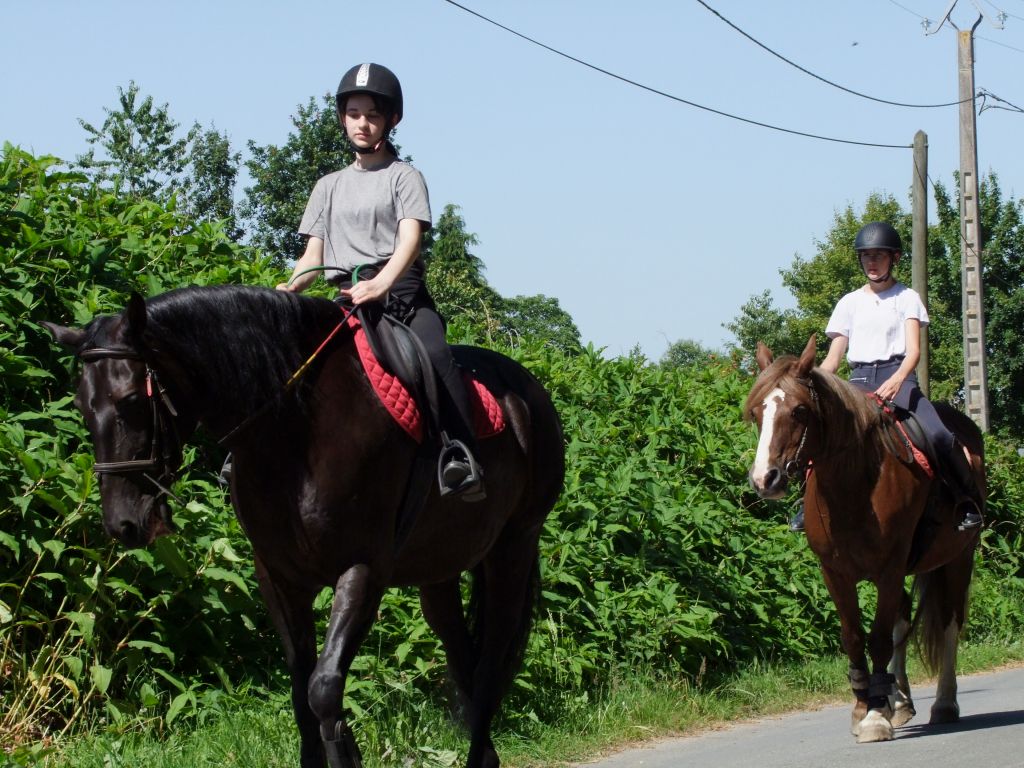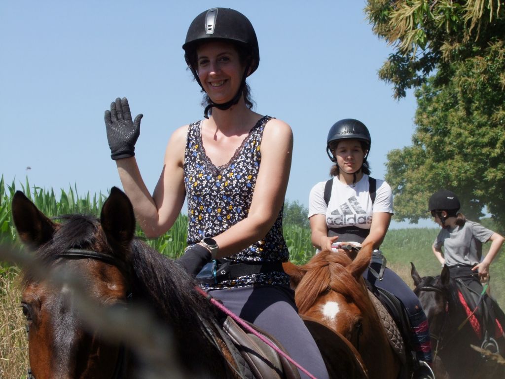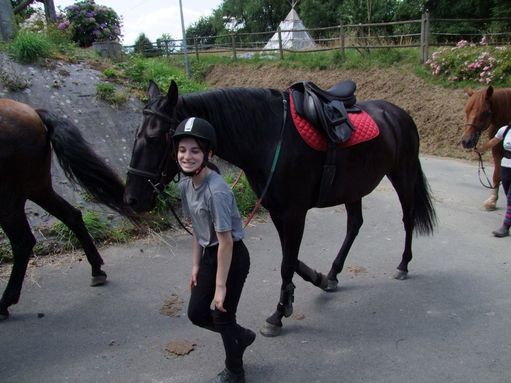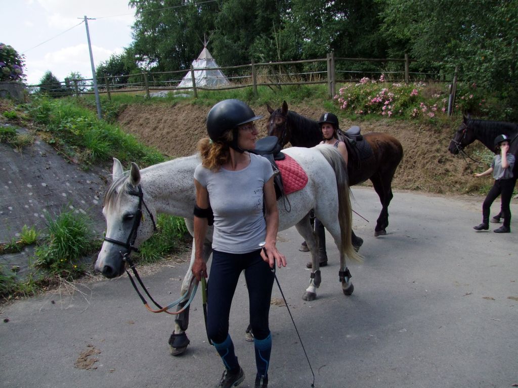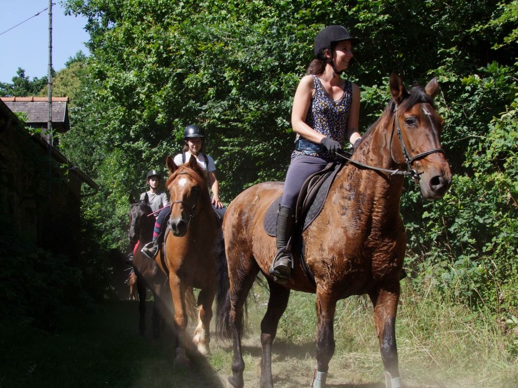 Un petit groupe parfait, pour des chevaux parfaits, dans une ambiance parfaite, sous un soleil parfait, a chevauché les chemins bucoliques de St Georges le samedi ainsi que la forêt secréte de Fougères le dimanche. A 10h30, nous voici en route avec ma fois une équipe bien sympathique composée de Mila avec Gamine, Lucie avec Bimbala, Eva avec Azur, Julie avec Oriana et Léana avec Sissi. Le tout chaperonné par Chacha !!