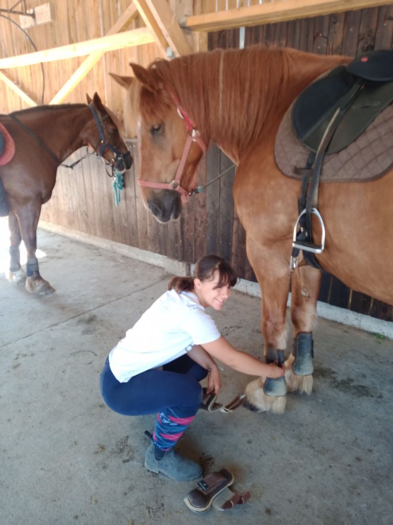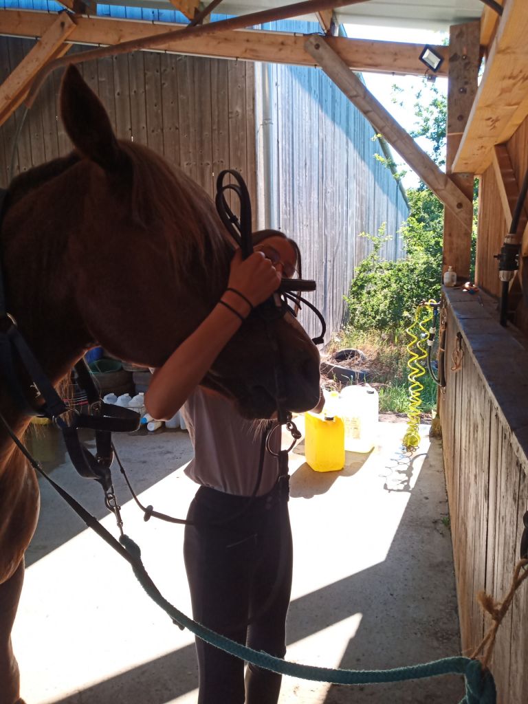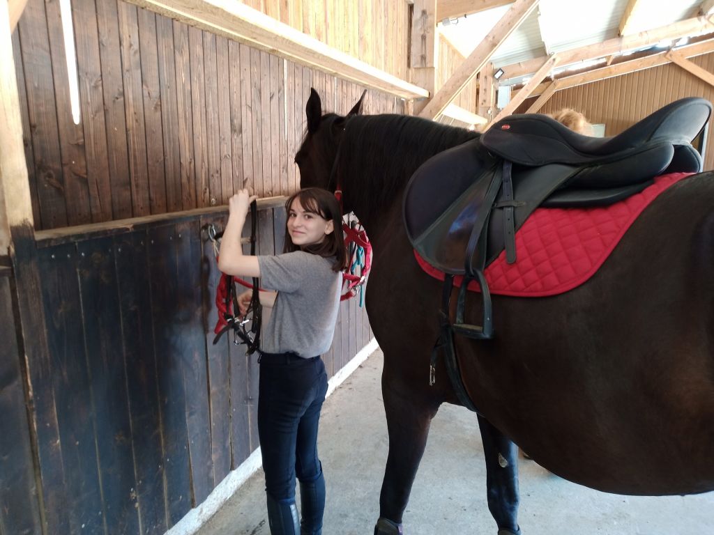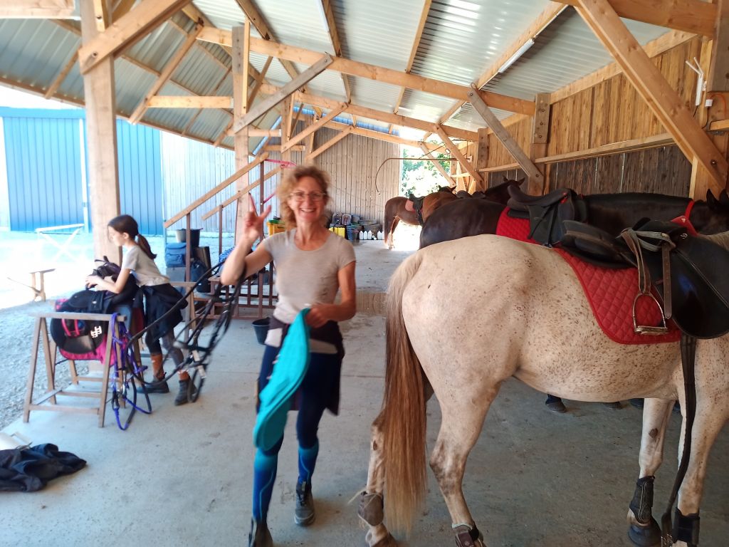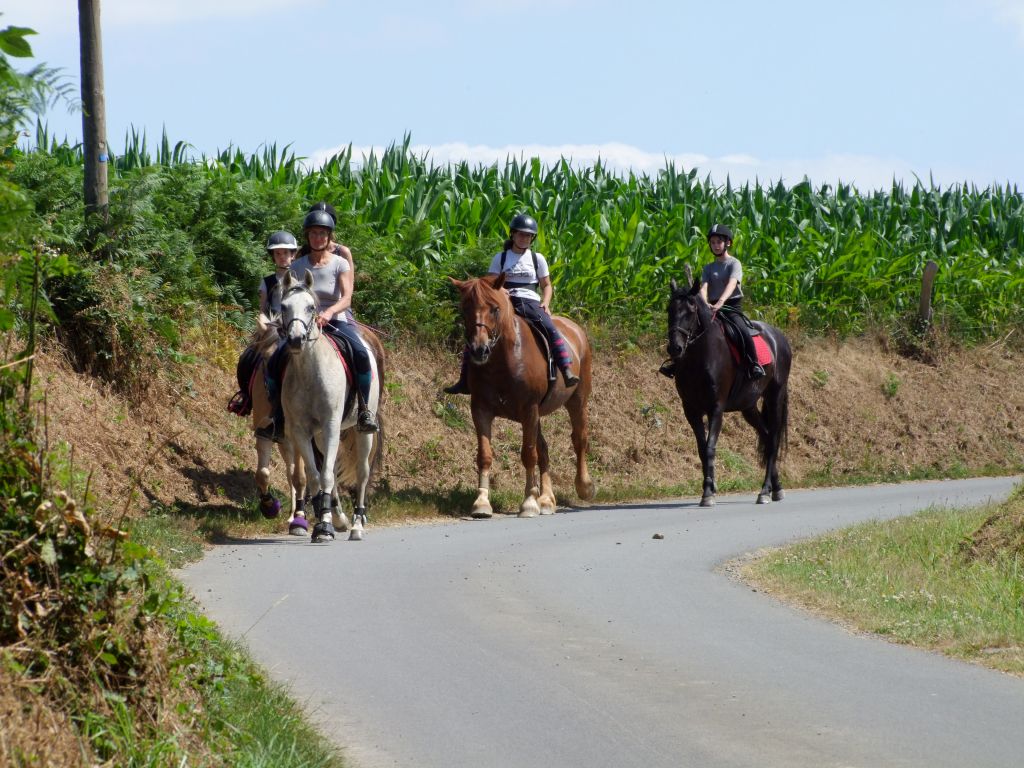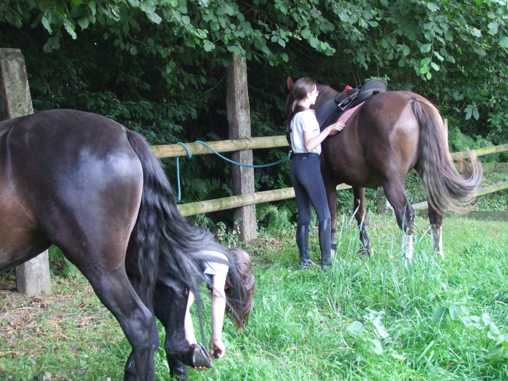 Un petit groupe parfait, pour des chevaux parfaits, dans une ambiance parfaite, sous un soleil parfait, a chevauché les chemins bucoliques de St Georges le samedi ainsi que la forêt secréte de Fougères le dimanche. A 10h30, nous voici en route avec ma fois une équipe bien sympathique composée de Mila avec Gamine, Lucie avec Bimbala, Eva avec Azur, Julie avec Oriana et Léana avec Sissi. Le tout chaperonné par Chacha !!