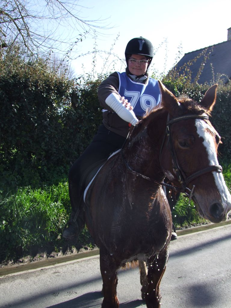 Monitrice devancée par les commentaires de ses élèves bravo ! 3 superbes courses avec des cavaliers au taquet, des chevaux et poneys avec des cardiaques records, et plein de gâteaux ... Cette fois, 3 courses en parallèle, une bonne petite organisation : Stéphane et Hélo se lançaient dans la 40 avec Boboun et Quick, 3 cavaliers dans la 20 : Violette et Opaline, Maël et Prune, Mélanie et Ptit Léo, et moi-même et Thaïs; dans la 10kms, le record des poids plumes : Salomé et Katia, Moranne et Tornado ( toutes les deux ont 7 ans !! ), Andy et Jet, s'ajoutent dans la 10 deux adultes Frédérique et Sissi, et Anne et sa jument : My hopes.