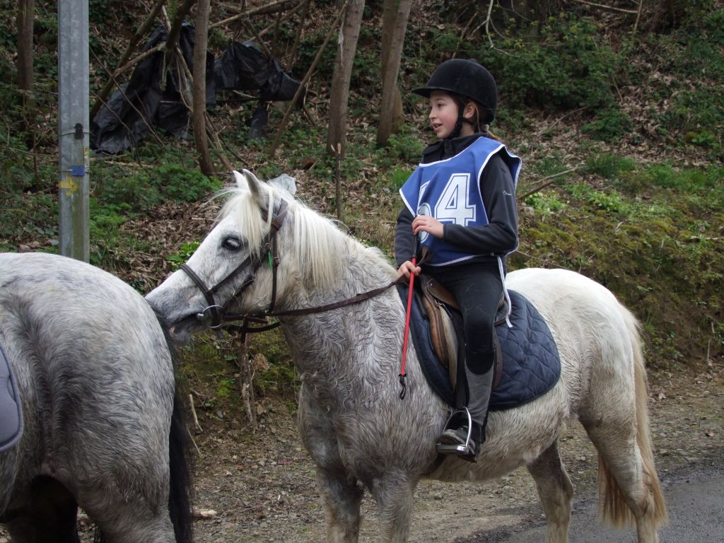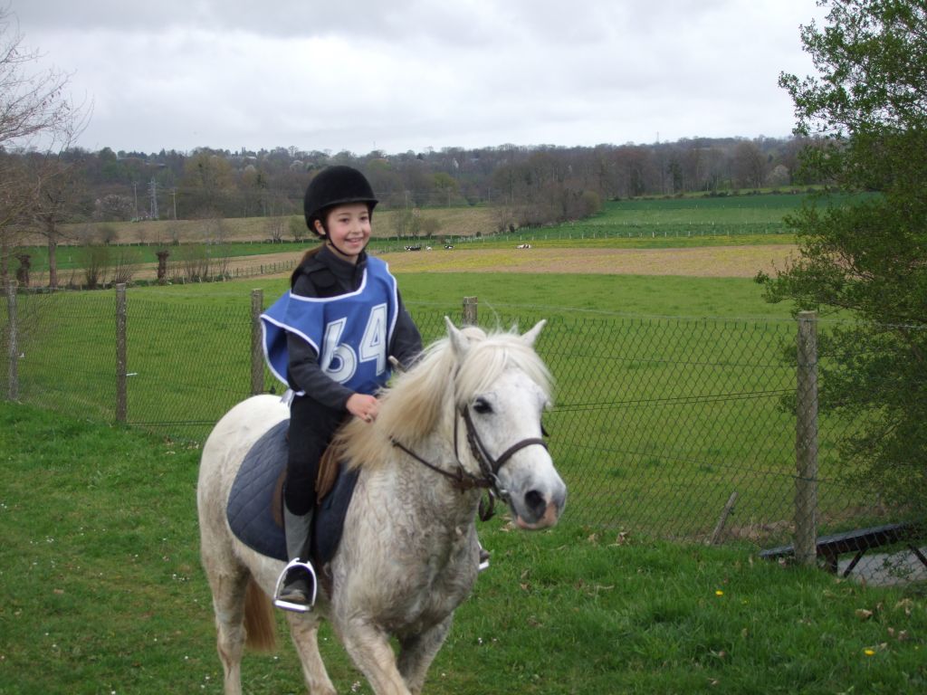 Côté club 4, de jeunes cavaliers débutaient. Pour tous les 5, c'était une grande première. Alors félicitations à tous les 5 pour avoir bien géré la course, Baptiste prenait soin de sa petite soeur : Prune alors que lui-même souffrait de ses genoux. Enya s'éclatait avec Juju, Angèle était parfaitement concentrée et Jean-François a failli nous faire un petit gâteau au moment où le vent secouait un ruban rouge. ( merci à Laurence pour l'avoir tenu au second tour ! ). Un ptit clin d'oeil à nos poneys tous au taquet mais en même temps sécurisants pour les enfants. Mister un vrai bon petit cheval de tête avec ses délicieuses galopades et son écoute parfaite. Stéphane nous doublait de temps à autre mais Mister imperturbable...