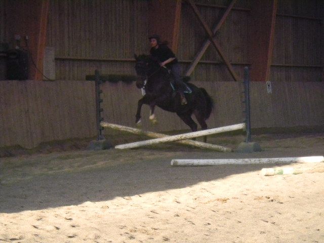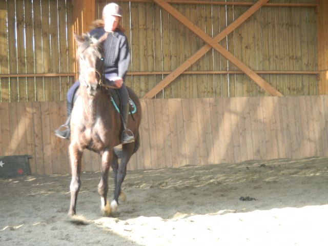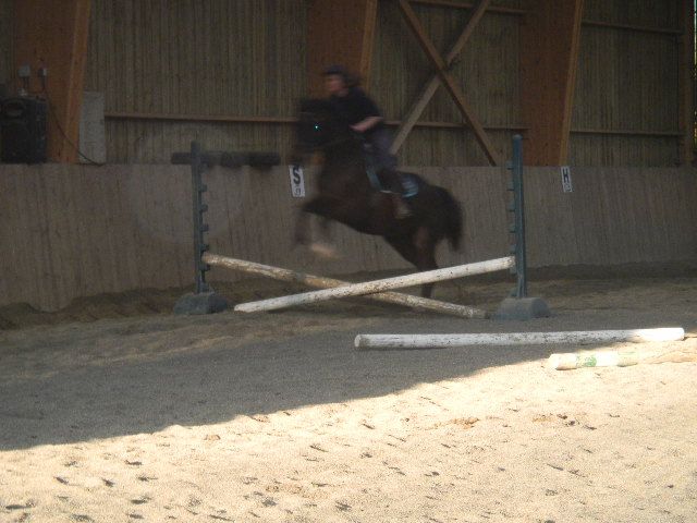 La suite des aventures de Venus! Il a bien repris en terme de forme, poids.. mais il a pris quelques chevaux sous le moteur (hi hi hi!!! je sais c'est nul mais bon, j'ai essayé!). Il faut qu'Olivier arrête de lui donner de l'enrubannage car évidemment il n'aimait pas au début mais il y a vite pris goût. Il devient plus calme en manège. Mais il lui faut un bon cavalier qui ne bouge pas trop sur la selle quand cela part au trot ou au galop, sinon au revoir... Et oui il a encore fait une bétise avec sa famille propriétaire mais rien de grave cette fois-ci car le cavalier a réagi avec brio. Il faut vraiment être patient et en vouloir mais il est tellement mignon et gentil, qu'il faut qu'il s'habitue à sa nouvelle famille. C'est comme un enfant qu'on vient d'adopter. Il faut qu'il trouve ses marques. Christelle a décidé de le faire sauter. Monsieur s'est rebellé au début mais à la 3ème tentative, il n'a pas eu le choix et il a sauté!!! Quel talent aussi bien le cheval que la cavalière!