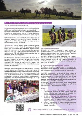 Ce championnat impose que les cavaliers de moins de 12 ans soient encadrés par un coach certifié. Leur monitrice, Christèle Turpin, sera donc à leur coté sur les pistes de 20 et 40km. Dès le mois de mars, tous nos cavaliers vont se retrouver sur les petits chemins reintembaultois pour préparer leurs chevaux !
