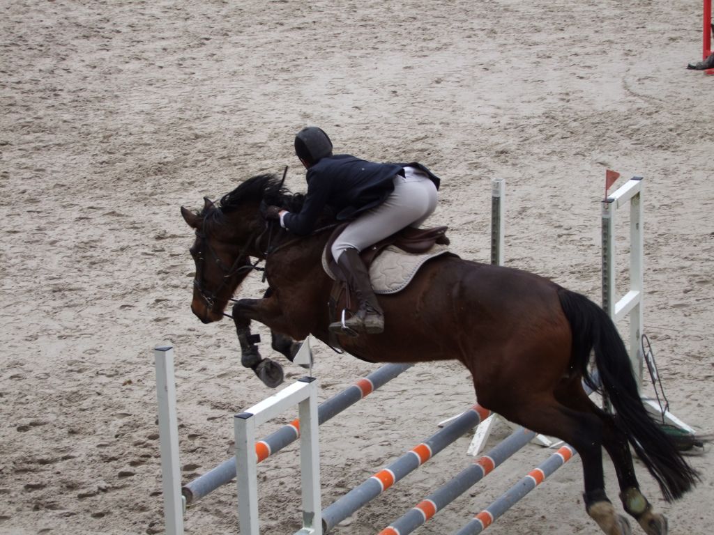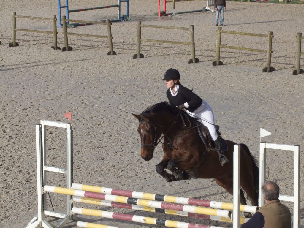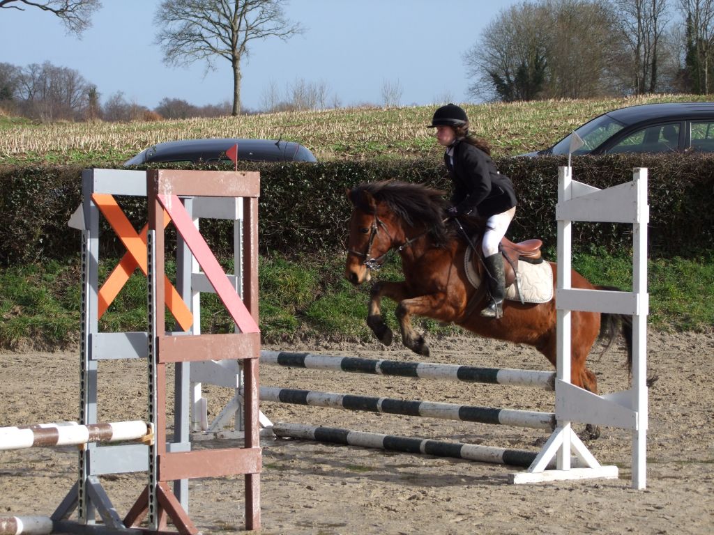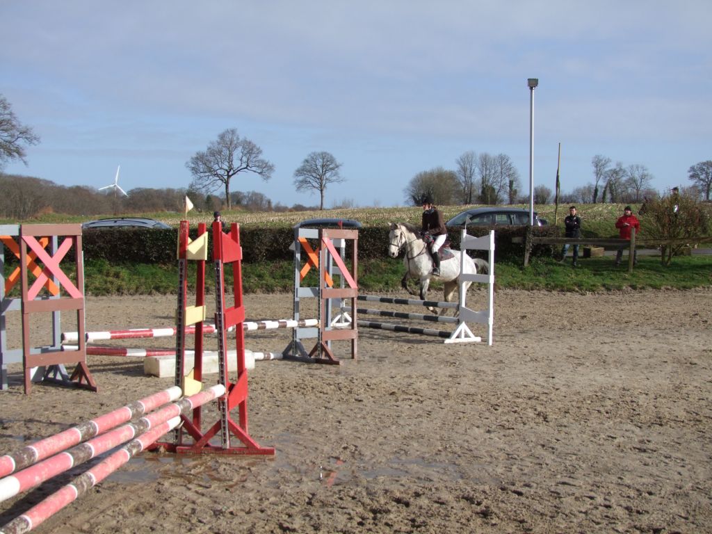 Rappel : le 08 décembre, j'avais espéré des sans faute en récompense de l'anniversaire de la monitrice. Mais, mis à part Caro, que des 4 points. Hier, il en fut autrement puisque presque chaque cavalier a réalisé son sans faute. Début de la club 4 avec 10 cavaliers engagés, Quentin débute avec Katia: tour très appliqué mais une malheureuse dérobade sur un des 2 directionnels, Quentin terminera 8ème. Chloé enchaîne avec Tornado : dérobade sur le 1 qui se termine par une chute, mais un petit coup de main avec les encouragements du jury lui permet de terminer son parcours; premier officiel, et puis Choé a évolué très vite, pas d'inquiétude, les bons résultats vont revenir très vite. Emilie enchaîne avec Opaline qui commençait à s'impatienter à la détente, difficile d'être calme lorque l'on est une anglo-arabe. Au final, une jument très appliquée avec une cavalière bien présente et qui fort heureusement encaisse avec le sourire s'il vous plait, les énormes sauts. Emilie terminera 3ème. Puis, c'est au tour de Laurine qui est revenue malgré sa chute du 8 décembre ( elle aussi commençait les officiels ). Bien raison de revenir car elle nous a montré un parcours sans faute très bien monté dans le juste galop. Laurine finira 2nde !! ( bravo ). Enfin, Quentin repart avec Tornado. Un petit point ensemble avec un cavalier très à l'écoute lui permet de réaliser un sans faute. Magnifique tour, de l'élégance et de la finesse !! Quentin termine 4ème. Malheureusement, le jury a pris la ruade de Toto pour une dérobade alors qu'il n'avait pas commencé son parcours et le classe 7ème, je conteste, Quentin reprend la 4ème place. Mais informatiquement, il est resté 7ème ( grr ), il faudra donc encore contester...