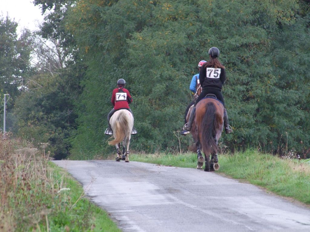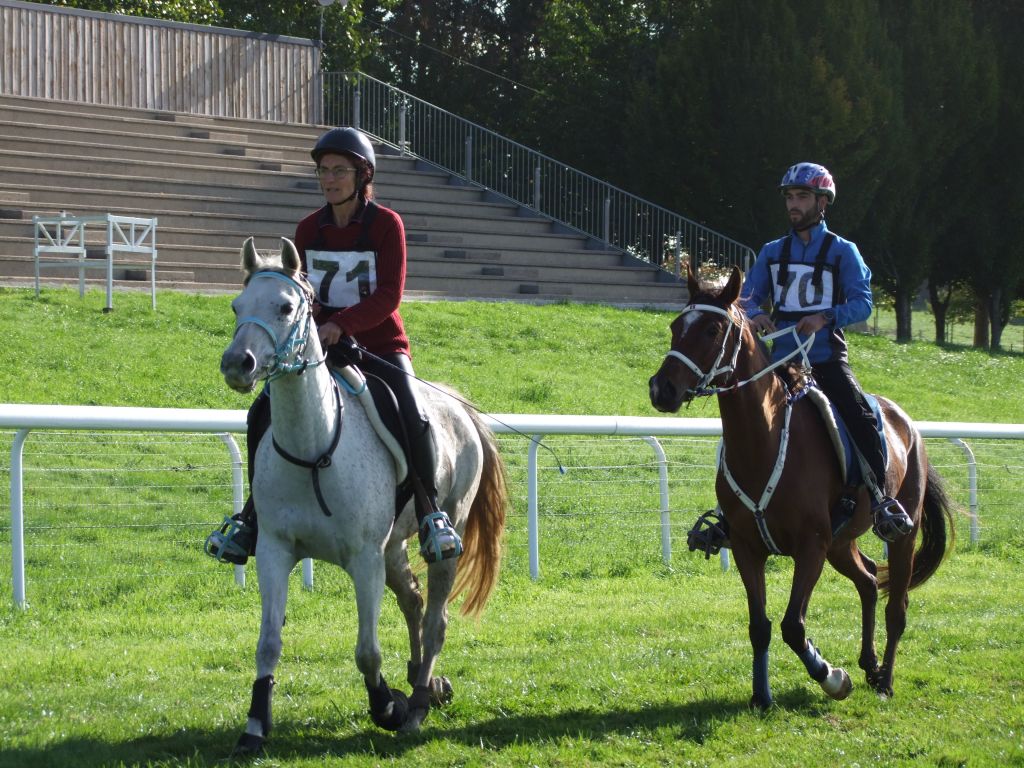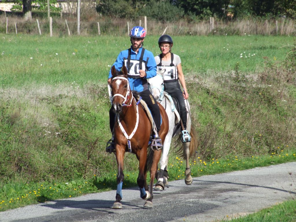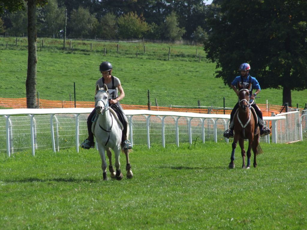 3 partants prennent le départ au même moment : le 75, jeune hongre un peu vif qu'on va rapidement perdre sur le parcours (qui veut voyager loin ménage ses ardeurs) et le 70, un PSA de 6 ans monté par Simon Ménez, jeune cavalier sélectionné pour les prochains championnats du monde d'endurance.