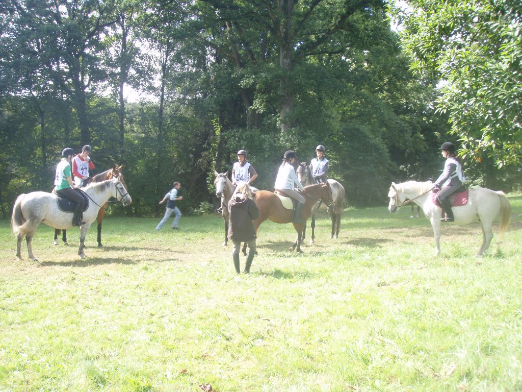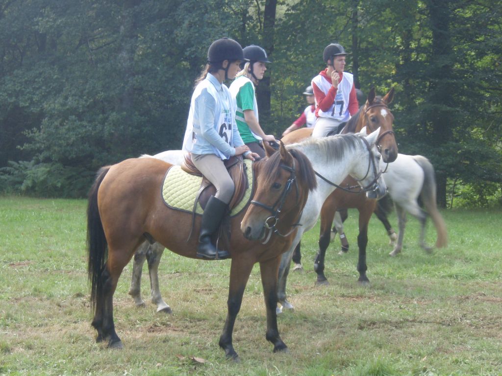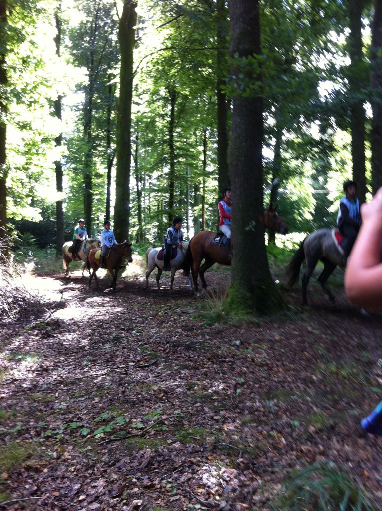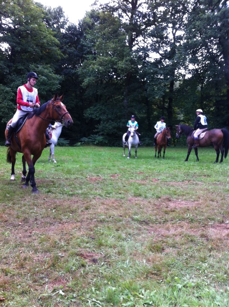 Journée éprouvante mais une équipe vraiment solidaire, merci à Hélo pour avoir pris du recul face à la blessure de sa juju et pour avoir repris de l'espoir ( après un moment de découragement qui se comprend parfaitement ). Un grand merci à mes cavaliers pour cette magnifique course dans la forêt, merci aux bénévoles ( Yo, Manon, Violette et Soso ) pour avoir donné de leur temps, et merci à Olivier pour sa grande patience de samedi et dimanche envers Féfé et son excellent travail éthologique. ( jument ferrée des 4 pieds et embarquée 4 fois en 2 jours ). Merci aussi à Mélanie pour avoir pris de nombreuses photos, et merci aux personnes ( Marie-Hélène, Hugo, Soizic...) qui ont fait l'assistance des chevaux et de la monitrice un peu amochée suite à un bon coup de tête dans le visage ( lol ). J'attends les commentaires des participants avec impatience...