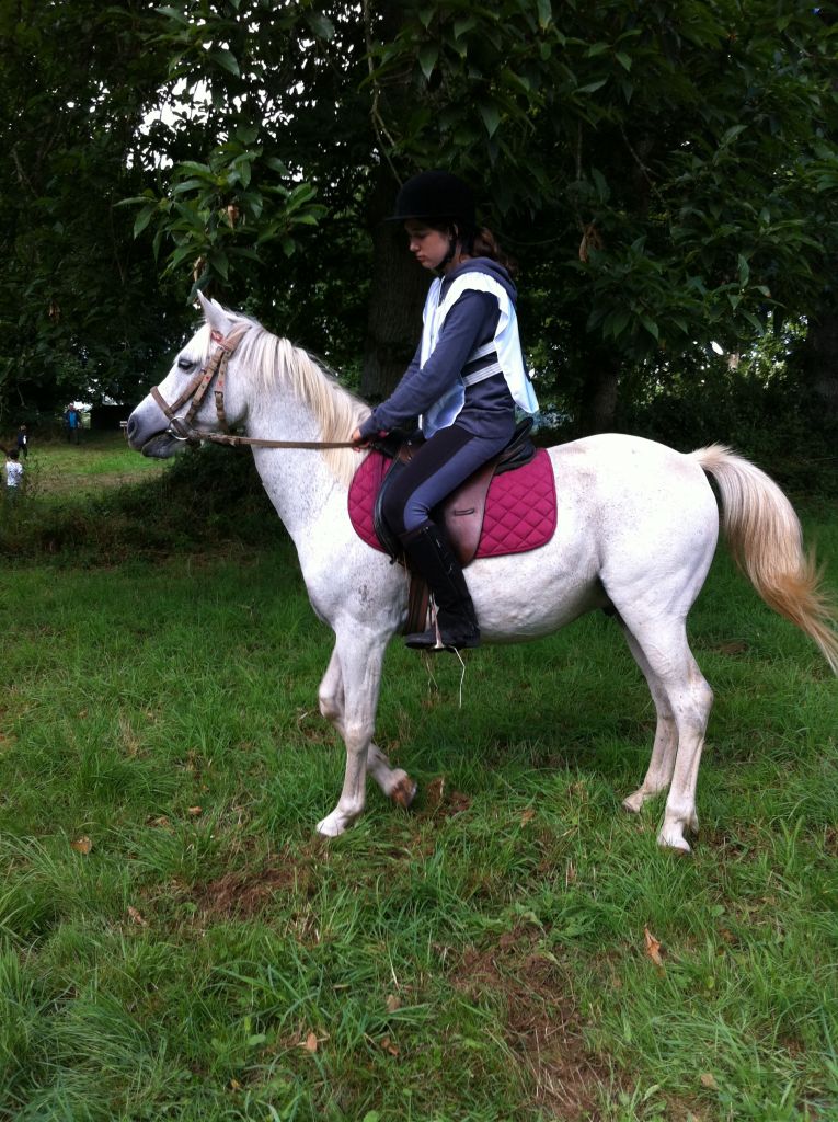 30 mns plus tard, contrôle véto et là quelle agréable surprise pour certains : récupération à 38 pour Féfé, nos poneys fidèles au poste en constante évolution : 42 pour Tornado, 44 pour Léo, 46 pour la jument de Kiki, Nuage également à 46, plus décevant Syska : 52 et Prune : 50 ( mais elles ont été les plus gourmandes durant l'été ), quant à ma petite arabe : 38: que du bonheur encore ! Ce qui donne le classement suivant sur 30 cavaliers toutes 20 kms confondues en 12/15 : Tornado avec Maëlenn: 15ème, Léo et Maëlys: 16ème, killian et Roséane : 21ème, Elise et Nuage: 25ème, Marion et Prune: 26ème, Sébastien et Syska: 27ème, grosse déception: Féfé disqualifiée pour légère boiterie, quant à ma petite arabe : elle finit 10ème mais pas d'inquiétude : officiellement, je suis classée en amateur donc pas en compétition avec mes cavaliers.