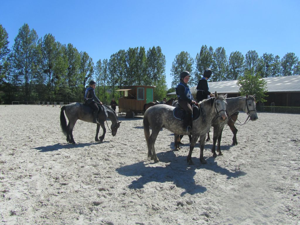 Toujours à la recherche de nouveautés et prêts à s'essayer à une nouvelle discipline, nous nous sommes lancés dans les courses d'endurance. C'est donc sous un beau dimanche ensoleillé que s'est déroulé la première participation du club à une compétition d'endurance où ambiance amicale et bonne humeur étaient au rendez-vous. La course d'endurance est une course de fond chronométrée et ponctuée par des contrôles vétérinaires assurant le bien-être et la bonne santé du cheval. Pour les épreuves auxquelles nous participions, le but était d'arriver dans un intervalle de temps donné avec un cheval en bonne condition à la fin de l'épreuve, le classement se fait ensuite en fonction du temps d'arrivée et du rythme cardiaque du cheval: mieux il récupère, mieux c'est ! Des stages avaient été organisé durant l'année, pour découvrir la discipline, ses règles, son fonctionnement, entrainer chevaux et cavaliers aux longues chevauchées à un rythme soutenu et s'exercer à présenter son cheval pour les contrôles vétérinaires.