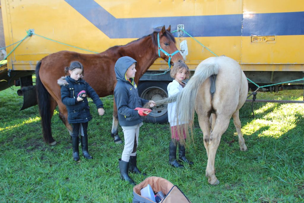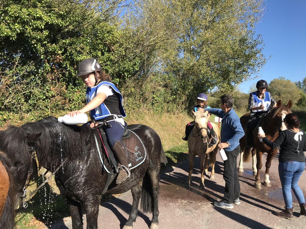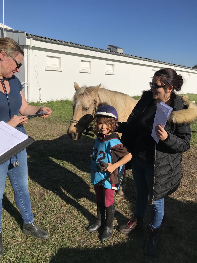 On s’occupe de Léo, Tornado et Loustic, malgré la fatigue, nos petits cavaliers marchent leur poney avec le sourire (aidé par Manon !) passage du contrôle veto avec de bon cardio, 45 pour Loustic et Tornado et 40 pour Léo.