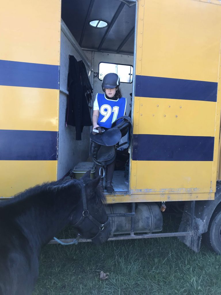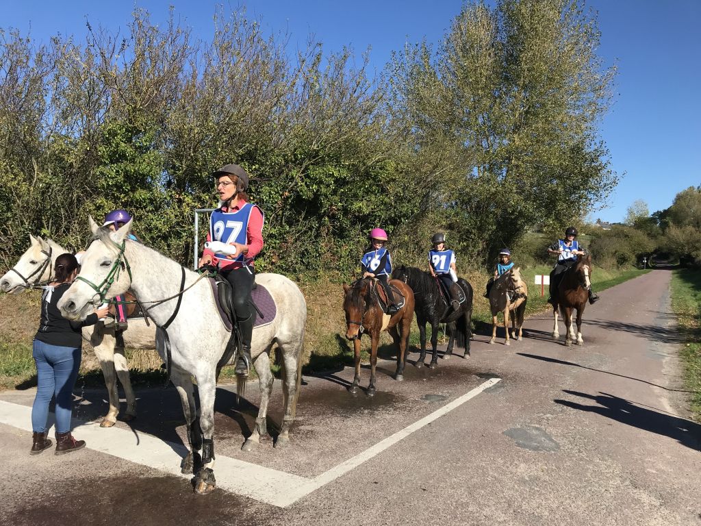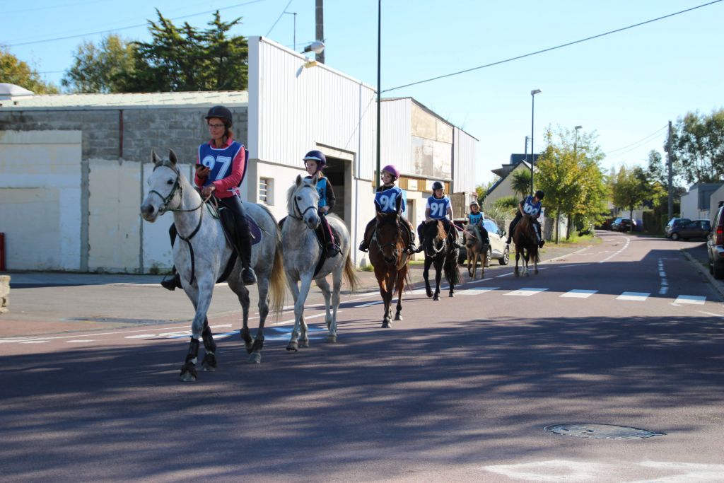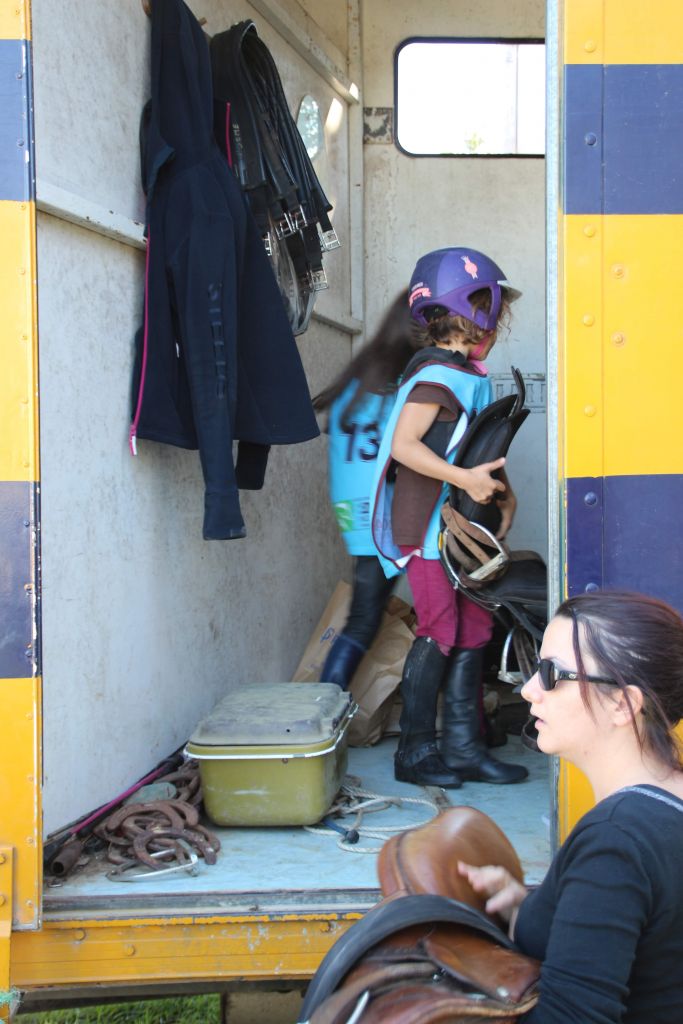 Une fois tout le monde chargé, c'est parti pour environ 2h de route, nous voilà sur l’hipprodome d’agon-coutainville avec un soleil splendide, on descend les poneys et c’est parti pour le marathon (la marée n’attend pas, et Christelle avait 3 tours à accompagner dans la journée). Tout le monde s’active, préparation des montures pour certaines, gestion des engagements/dossards/cartes pour les autres.