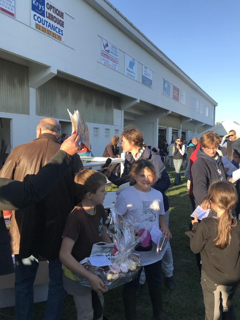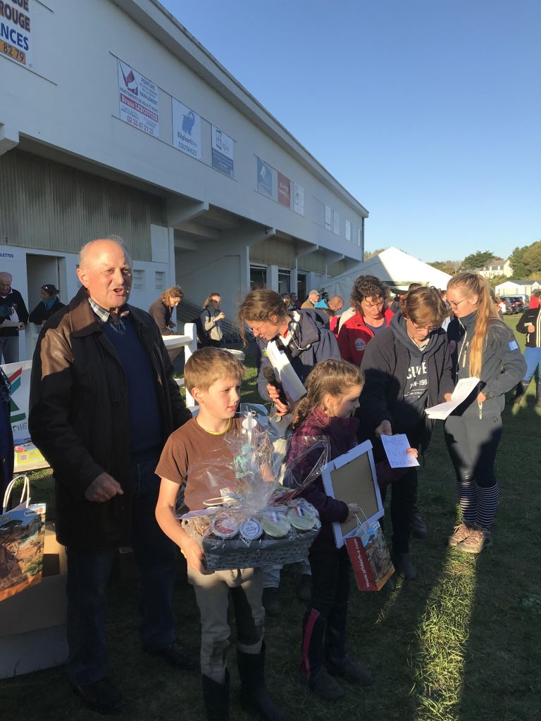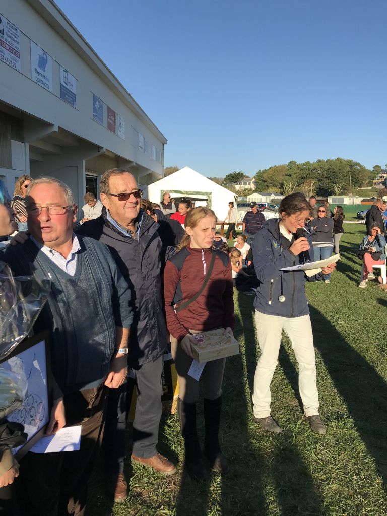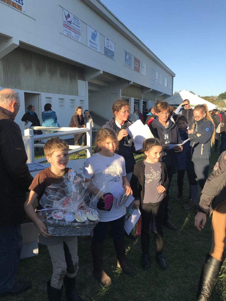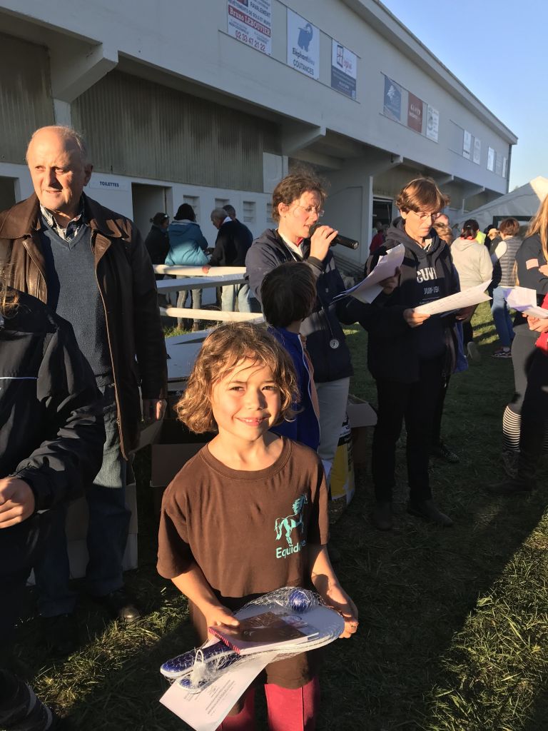 Au final, les efforts de la famille Turpin (pas évidents de partir tous les dimanches en concours, surtout quand ils sont loin) ont payé avec de très beaux classements dans nos 2 épreuves. Célestin remporte la poney 4 (21 partants), suivi par Mila en 2ème position, les filles ne sont pas loin à suivre (Aude 4éme, Jade 5éme et Agnes 10é mais disqualifiée suite à un pbm de certificat medical). Pif remporte la club 2, nous serons toutes les 3 classées dans les 5 premières sur les 21 partants (Mélanie 3è et Lolo 5è). On repart tous avec de beaux cadeaux et des souvenirs plein la tête (ça explique mes oublis sur les cardios et les classements...)