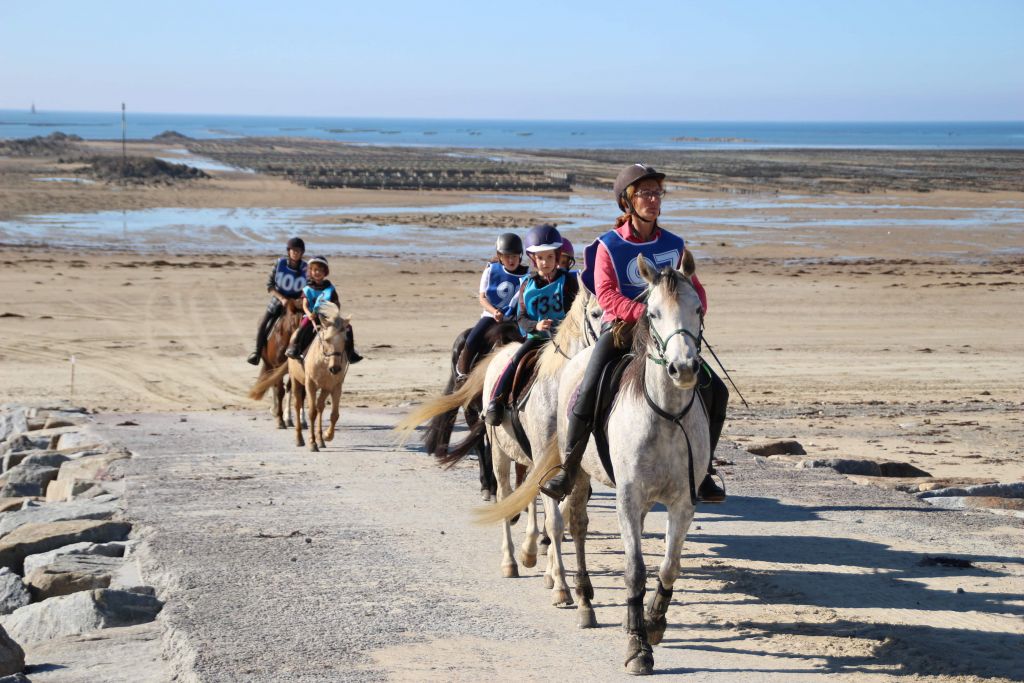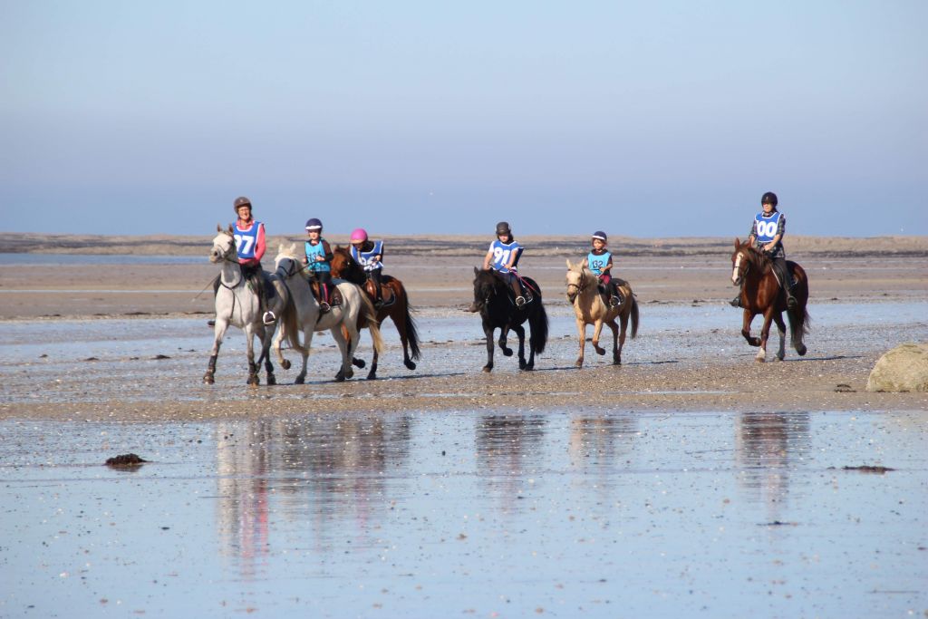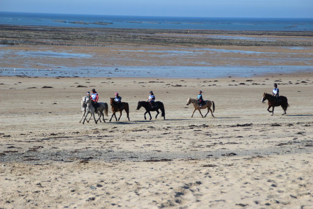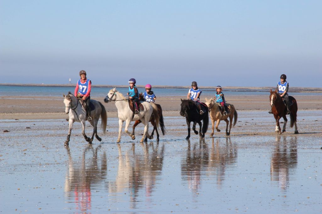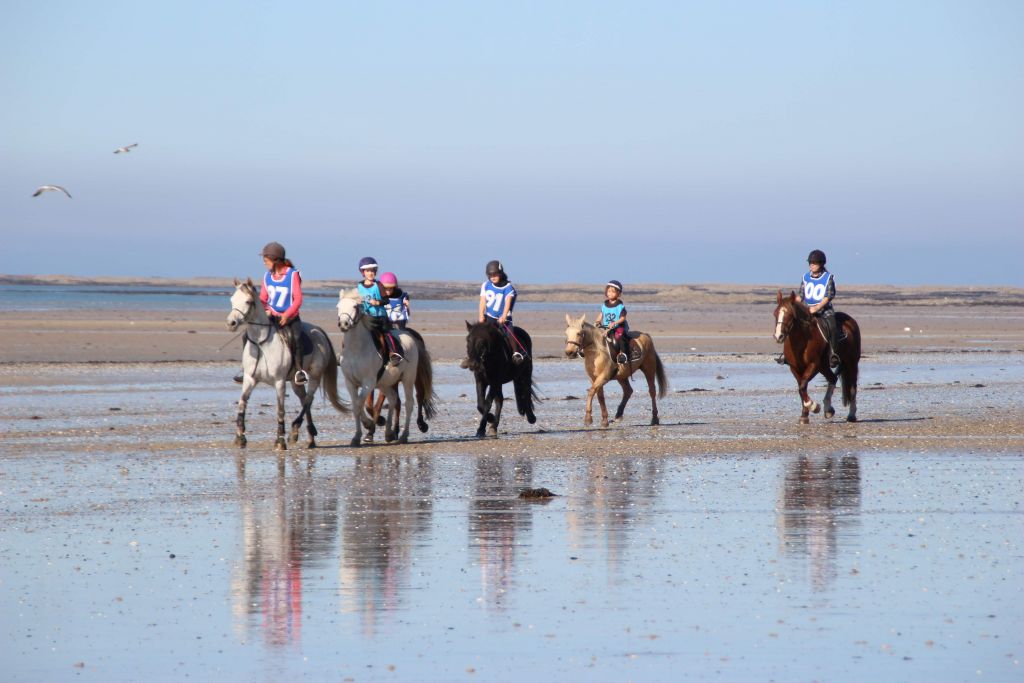 Hop, Christelle et Lolo ne perde pas de temps et se remettent en selle très vite pour se lancer sur l’epreuve poney 4 avec Aude, Agnes, Jade et Mila. L’assistance se met aussi en route. 1h plus tard voilà tout le monde de retour également pile dans les temps (Christelle gère vraiment le chrono !!). Charifa, Sissi et Katia vont directement au contrôle véto pour permettre à Célestin de faire sa course avant la marée haute, mission accomplie !