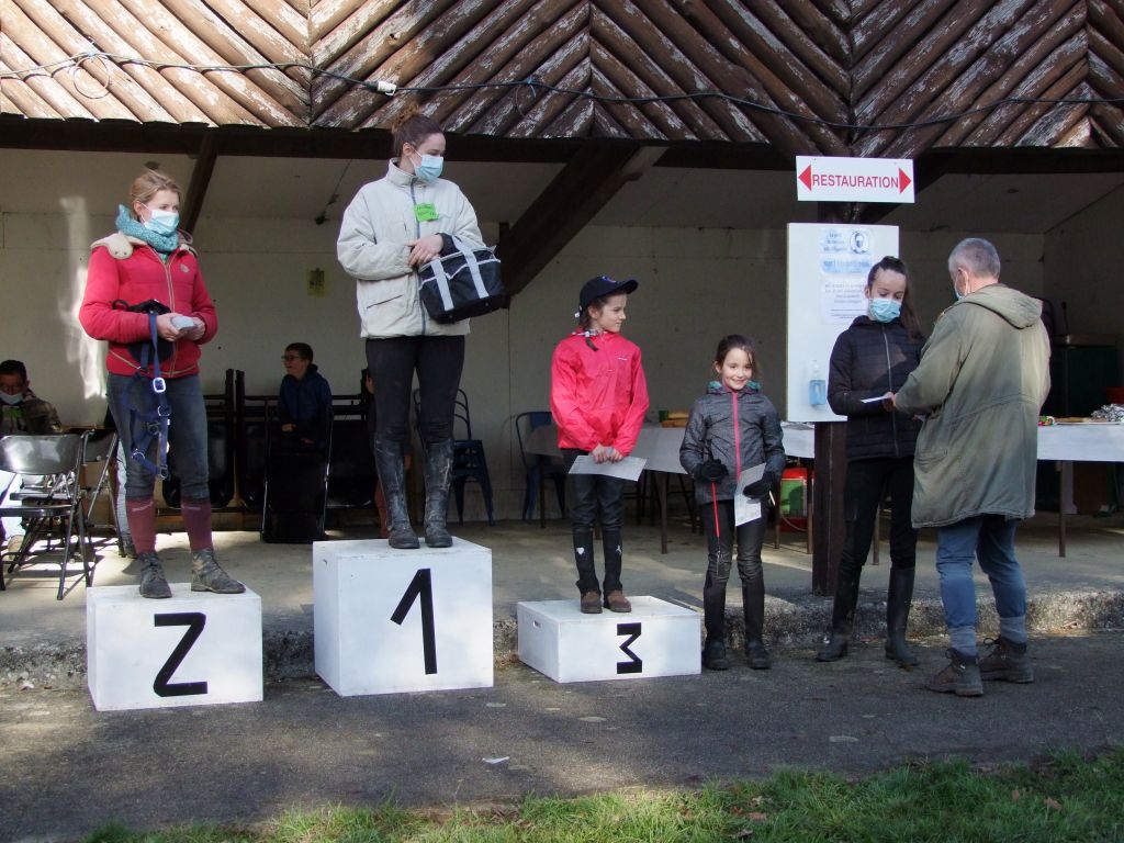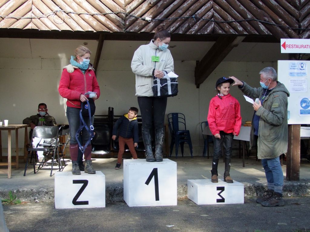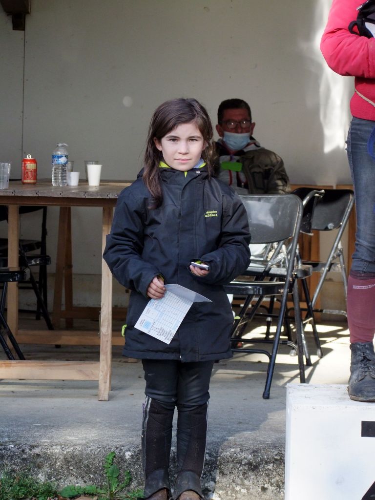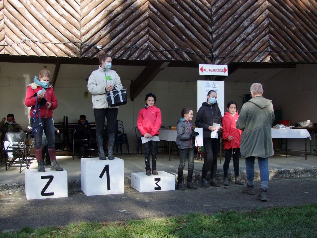 Sans plus tarder, voici les résultats: sur 31 engagés, Violette avec Charifa 1ère, récup à 39, 3ème: Mila avec Prune récup à 40, 4ème: Jade et Sissi récup à 43, 5ème: Alicia et Bimbala récup à 43, 6ème: Alizéa et Tornado récup à 43, 7ème: Lou et Katia récup à 44, 16ème: Julie et Fifty récup à 52, 25ème Christelle et Pif récup à 62, et à mon grand regret: Madame revient boîteuse malgré une belle course avec Aude.