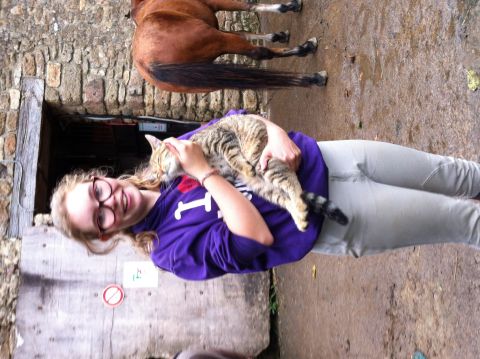 Ce soir vers 18h30 après le cours de saut, nous avons eu la visite d'un petit chaton trop adorable. Violette a eu la géniale idée de lui donner un fond d'eau dans un saut. Puis après tout ça on lui  trouver un petit nom tout charment qui lui va à ravir "Equidome". Voilà à quelques mois (3mois environs) ce petit chaton devient la mascotte du club. Pour la petite histoire de son arriver au club elle est simple et courte :"Christèle et Olivier ramener Quick de nuit et on entendu des miaulements. Alors olivier la appeler et il l'on caresser et tout ... Puis il les a suivi jusqu'au club." simple et courte comme promis mais je vous ai aussi prise des photos afin que à votre prochaine visite vous ne ratiez pas Equidome mascotte malgré lui. Voici quelque photos de lui afin de pas le louper la prochaine fois...