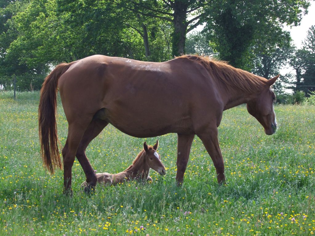 Cette fois, la technique a parfaitement fonctionné. Réveillés depuis plusieurs nuits par ces dames qui se grattaient et déclenchaient le bip, nous étions parfaitement entraînés. Samedi 26 était le jour J pour Lola, le colostrum était bien là pour témoigner de l'imminente naissance. Flo très volontaire décida de dormir chez nous pour voir son premier poulinage.