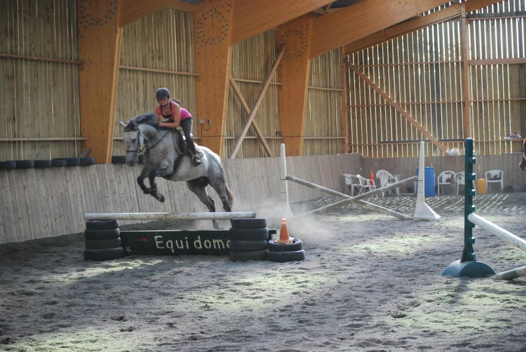 Puis, je suis arrivée à Equidome où je suis devenue une jument de club pour les confirmés. Je me suis vite adaptée à ma nouvelle vie et je suis même rapidement sortie en concours. En effet, bonne jument d'obstacle, je saute facilement 1 mètre et j'enchaine très bien un parcours. Mes cavaliers vantent ma franchise, mon bon équilibre et mon galop cadencé et ils adorent les supers sensations que je leur donne sur les barres.