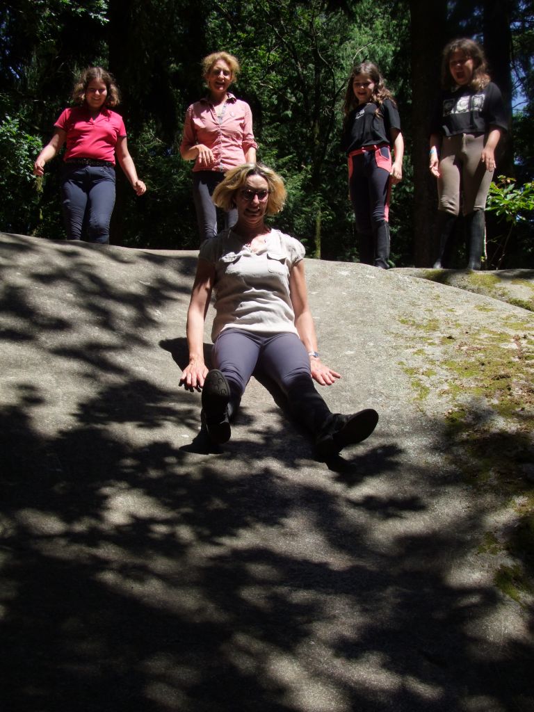 Une super rando durant ce week-end du 17 et 18 juillet: 60 kms parcourus en deux jours. Des cavalières au top : Olga malheureusement adulte orpheline, Sarah, Charlotte, Rose, petite et grande Stella, et Mila.