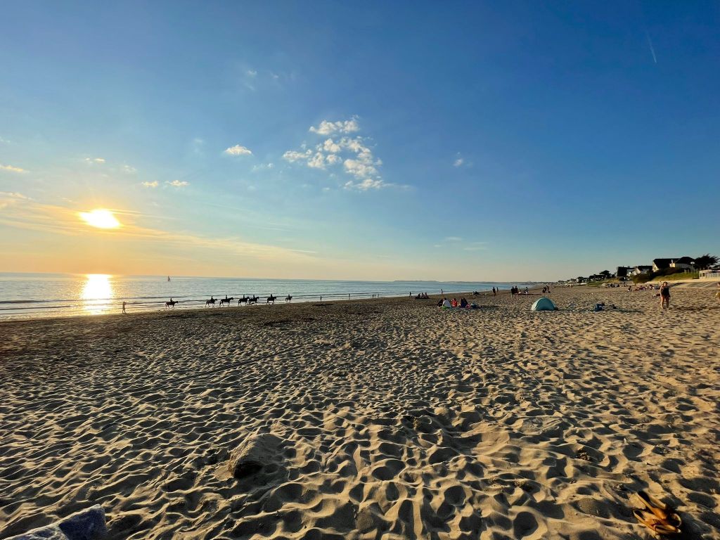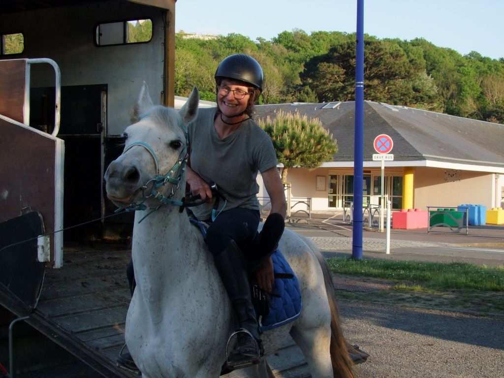 C'est avec une journée d'avance que nous sommes allés à Jullouville pour vivre un coucher de soleil à cheval sur la plage. Ce samedi 11 mai, pleine mer à 22h20... pour un départ d'Equidome à 18h30... Un peu serré, mais tout à fait jouable d'autant que le coefficient de marée n'était pas trop élevé. Les projections allaient bon train sur l'heure du posé de sabot sur le sable fin ... 20h00 ? 20h15 ? finalement ce fut 20h30.
