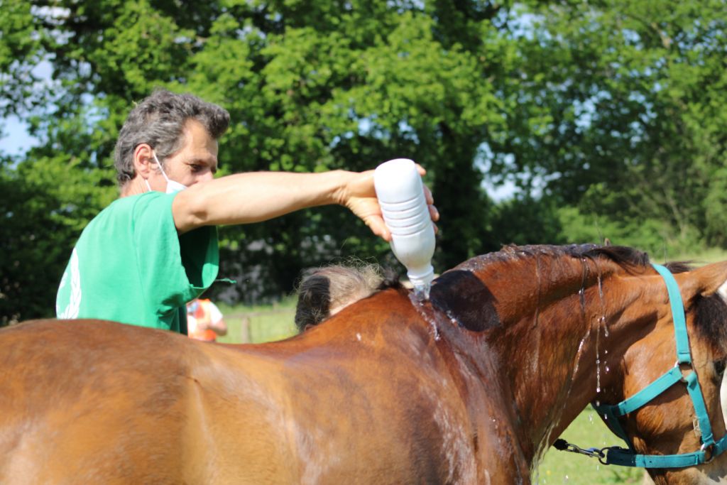Enfin, je n'oublie pas mon cher et tendre époux qui a passé en revue à un rythme infernal tous les pieds des chevaux/poneys pendant deux semaines, brodé multes Tshirts et pendant plus d'une soirée à peaufiner le road book (entre 2 rounds de foin à enrubanner...)