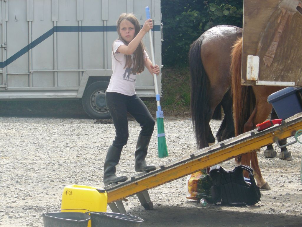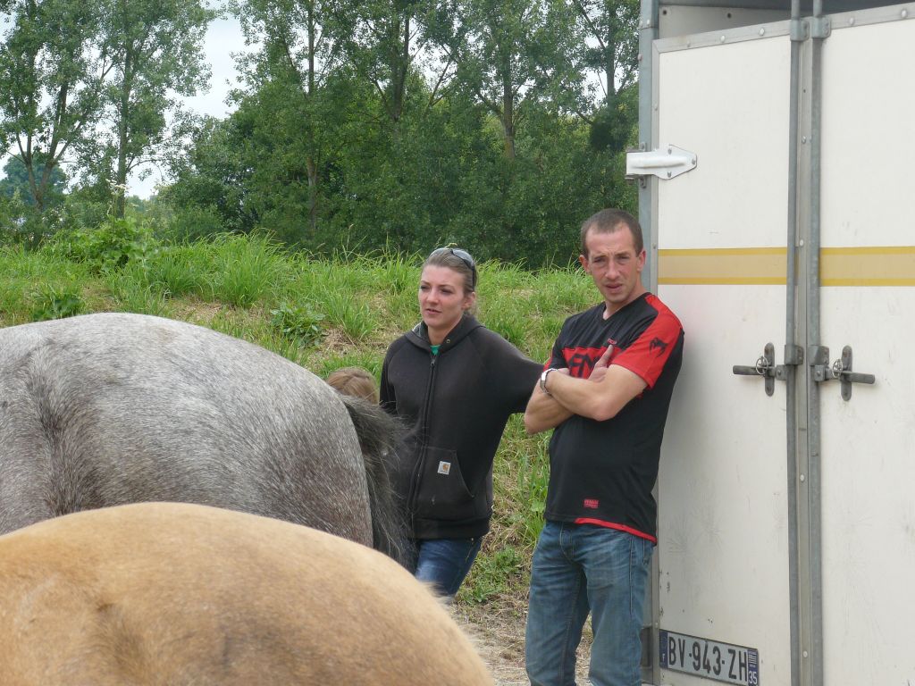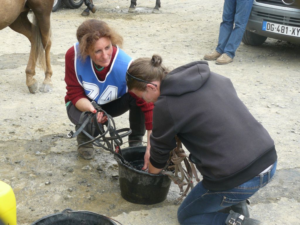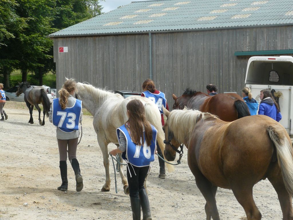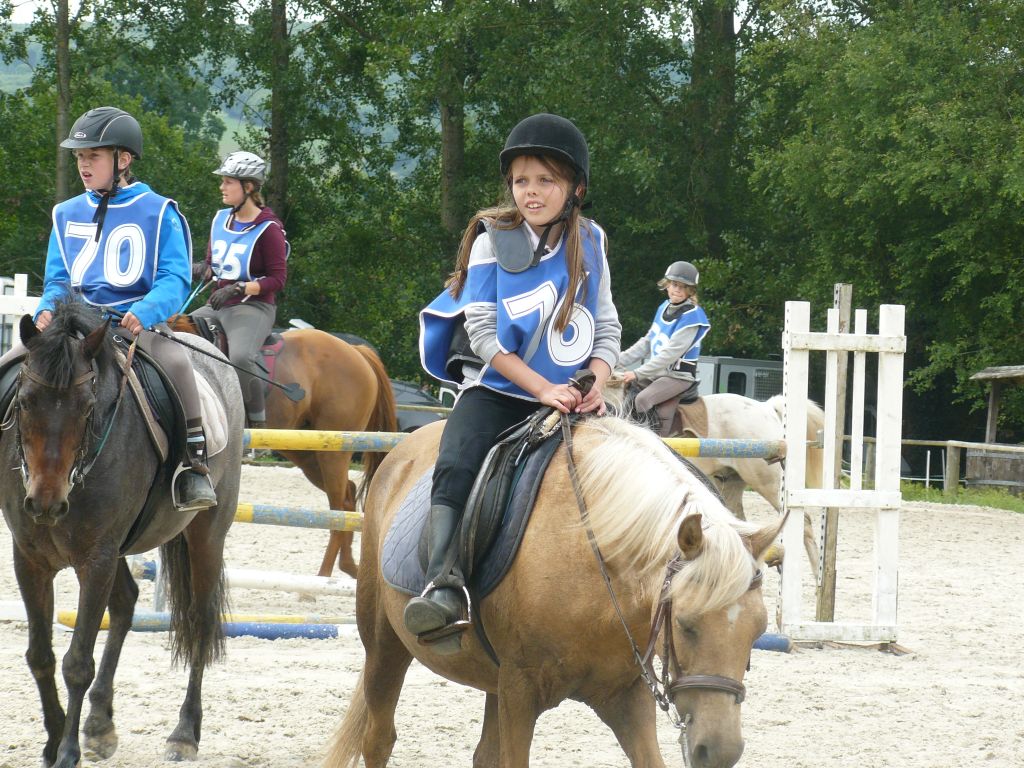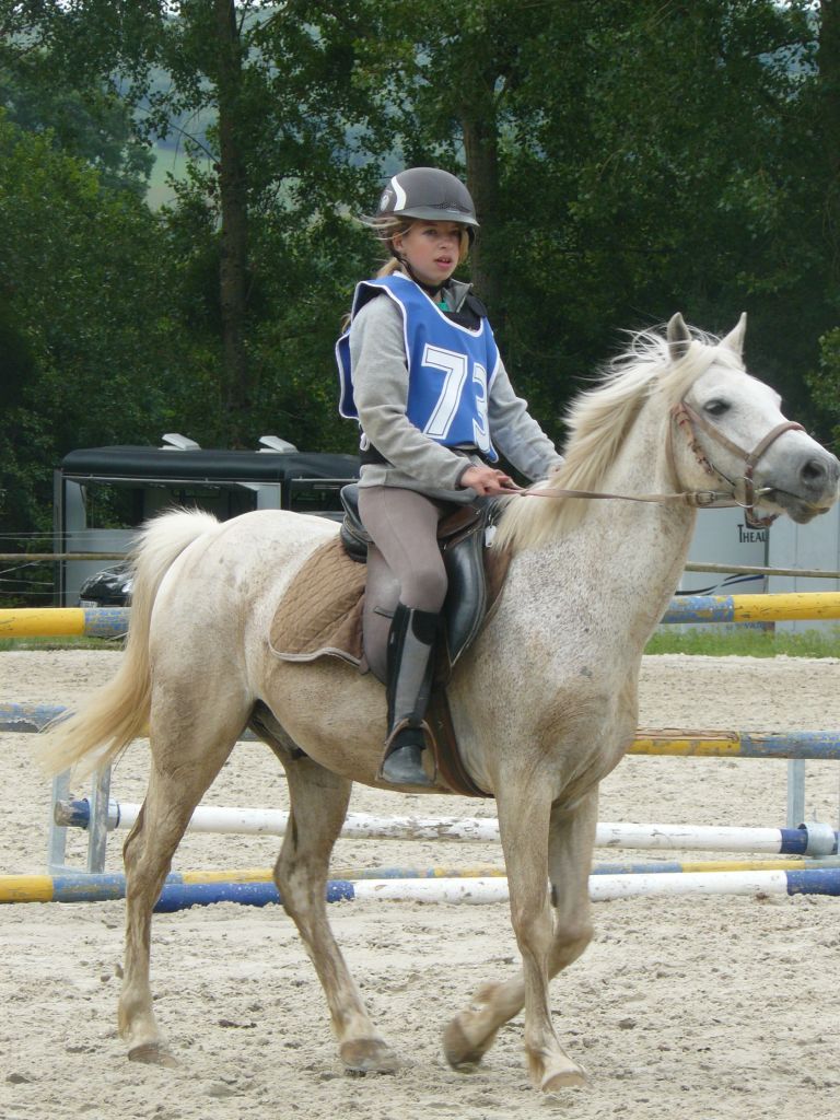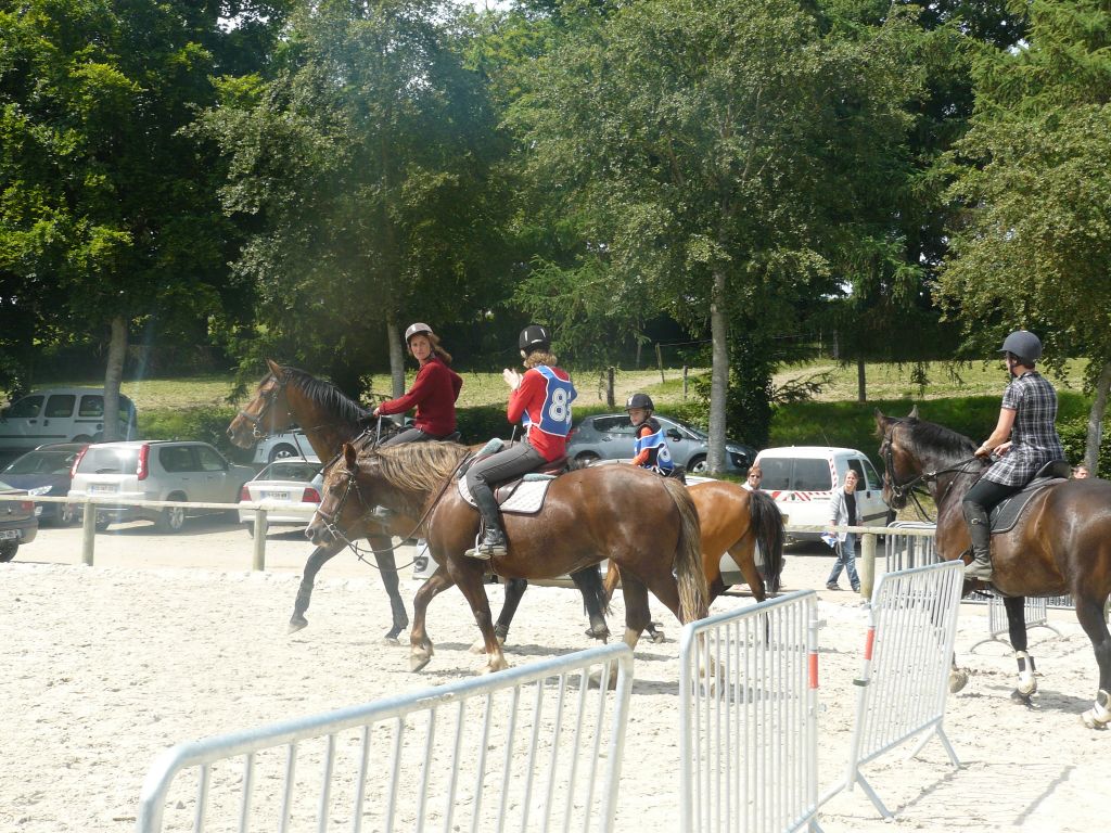 Autant d'aventures en si peu de temps, cela faisait bien longtemps ! l'organisation était chaude mais pourtant faisable; nous devions partir entre 9h30 et 10h sur la course pour que je puisse accompagner Hélo sur une deuxième boucle pour la première 40 de Féfé, sans oublier Thaïs ensuite sur la 10 kms. Après un petit caprice de Bob le camion, nous sommes partis en retard donc départ sur la course à 10h15, pas trop mal. Nous voilà à cheval avec nos tous jeunes cavaliers : Moranne avec Katia, Léo et Jet, Maeva et Léo, Hélo à mes côtés avec Féfé qui devient de plus en plus cool à l'embarquement. Beau début de course pourtant avec une bonne avance de prise, mais premier incident : Féfé se déferre à l'antérieur gauche; obligés bien sûr de faire attention aux cailloux ... le sort s'acharne sur nous puisque au beau milieu d'une galopade dans un champ de maïs, mon étrivière casse ! le temps de retrouver mon étrier, de réfléchir à une solution, le chrono lui ne nous attendait pas. Quelques kms plus tard, mon étrivière recassait... Marie-Christine finit par nous localiser avec une nouvelle étrivière après qu'hélo se soit débarrassée d'une partie de sa martingale en guise d'étrivière. A 10 kms, nous étions descendus à 9kms/h environ, il fallait remonter; heureusement, les terrains galopants nous ont aidés à rattraper une partie de notre retard, les jeunes cavaliers tenaient bon ! bref, la ligne d'arrivée fut franchie à 11,23 kms/h, 7 mn de retard seulement ! Côté cardio : Katia termine à 43, Léo 48, Jet 57, Mister 49, et Féfé était à 44. Nous étions 7 engagés, malheureusement 2 engagements terrain se sont rajoutés et ont évité la 2nde place à Moranne et Katia qui terminent 4ème sur 9, Maeva et léo 6ème, Mister 7ème, Léo et Jet 8ème. Bilan : garder son maréchal avec soi, prendre une étrivière de rechange, mais quel groupe solidaire !