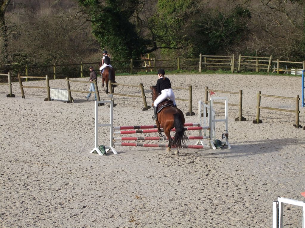 En parallèle de la club 4 se déroulait la club 2 dans la grande carrière. J'abandonne quelques instants mes cavaliers de la club 4 pour jeter un oeil sur le tour de Sébastien, tour très bien monté, une jument qui s'applique, malheureusement une dérobade sur le mur à l'entrée d'une ligne. Hélo enchaîne avec un sans faute, malheureusement, je n'ai pu la coacher, mes cavaliers de la club 4 étant prêts à passer. En tout cas, étant donné le petit dépassement de temps, le tour a dû être monté avec application et les consignes respectées. Bravo Hélo !! et merci Zib de l'avoir coachée ! Hélo termine 14ème sur 30 engagés, pas mal !!