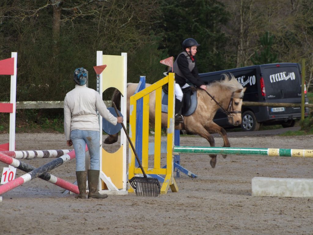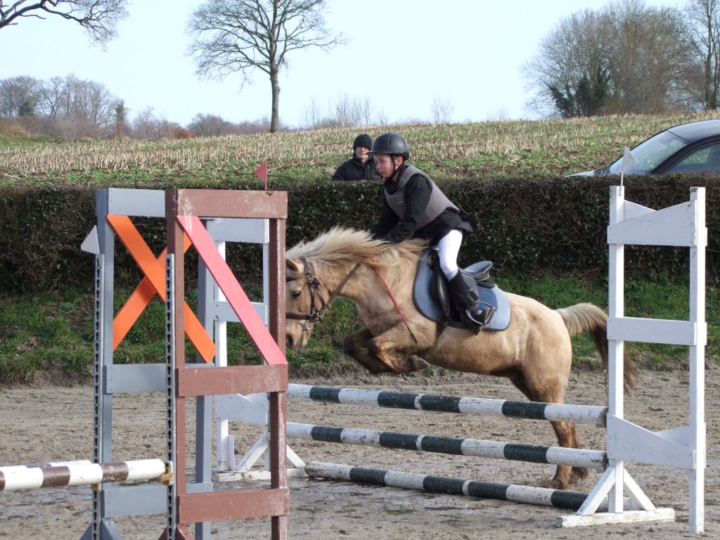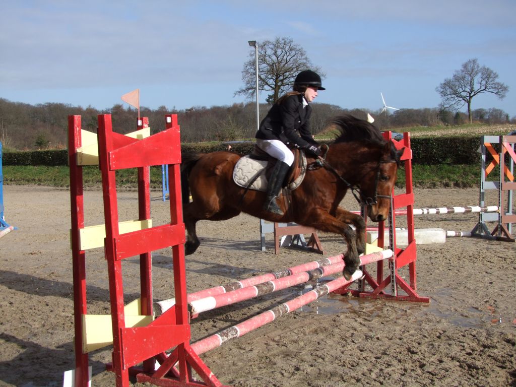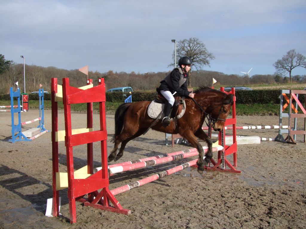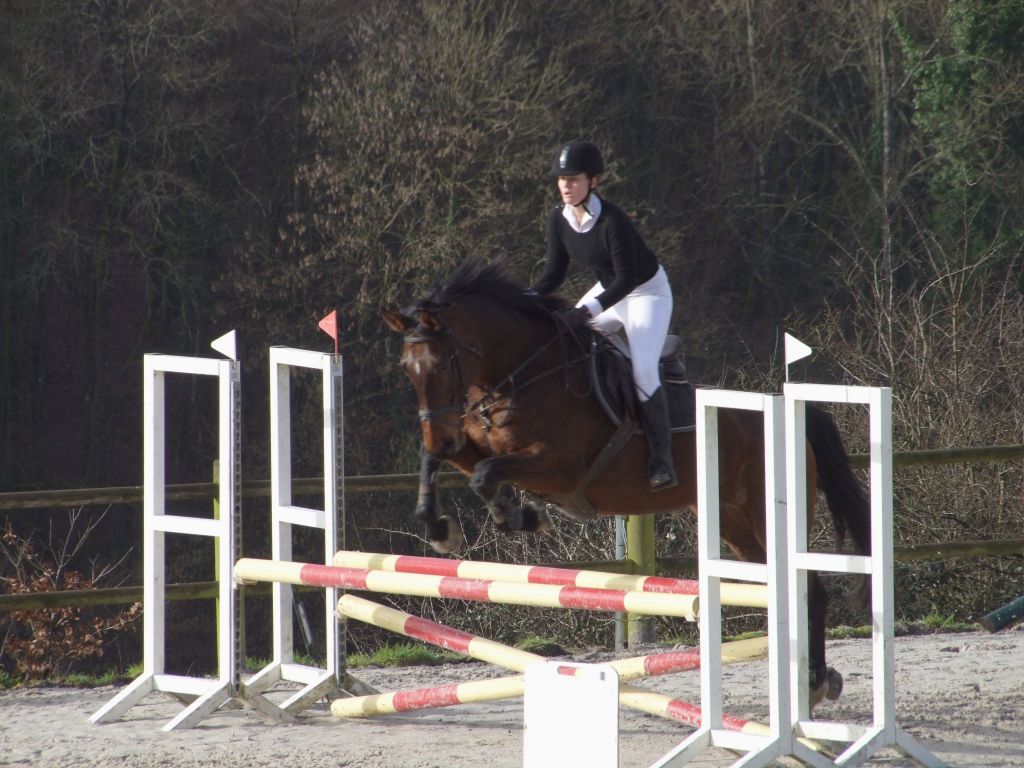 Rappel : le 08 décembre, j'avais espéré des sans faute en récompense de l'anniversaire de la monitrice. Mais, mis à part Caro, que des 4 points. Hier, il en fut autrement puisque presque chaque cavalier a réalisé son sans faute. Début de la club 4 avec 10 cavaliers engagés, Quentin débute avec Katia: tour très appliqué mais une malheureuse dérobade sur un des 2 directionnels, Quentin terminera 8ème. Chloé enchaîne avec Tornado : dérobade sur le 1 qui se termine par une chute, mais un petit coup de main avec les encouragements du jury lui permet de terminer son parcours; premier officiel, et puis Choé a évolué très vite, pas d'inquiétude, les bons résultats vont revenir très vite. Emilie enchaîne avec Opaline qui commençait à s'impatienter à la détente, difficile d'être calme lorque l'on est une anglo-arabe. Au final, une jument très appliquée avec une cavalière bien présente et qui fort heureusement encaisse avec le sourire s'il vous plait, les énormes sauts. Emilie terminera 3ème. Puis, c'est au tour de Laurine qui est revenue malgré sa chute du 8 décembre ( elle aussi commençait les officiels ). Bien raison de revenir car elle nous a montré un parcours sans faute très bien monté dans le juste galop. Laurine finira 2nde !! ( bravo ). Enfin, Quentin repart avec Tornado. Un petit point ensemble avec un cavalier très à l'écoute lui permet de réaliser un sans faute. Magnifique tour, de l'élégance et de la finesse !! Quentin termine 4ème. Malheureusement, le jury a pris la ruade de Toto pour une dérobade alors qu'il n'avait pas commencé son parcours et le classe 7ème, je conteste, Quentin reprend la 4ème place. Mais informatiquement, il est resté 7ème ( grr ), il faudra donc encore contester...