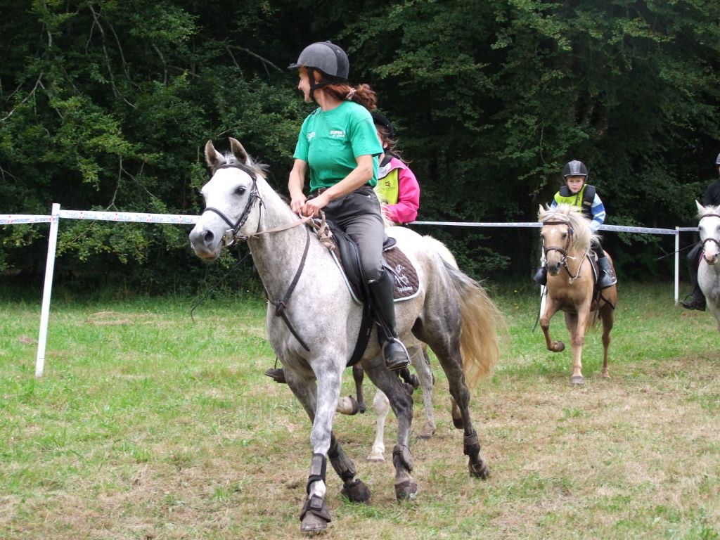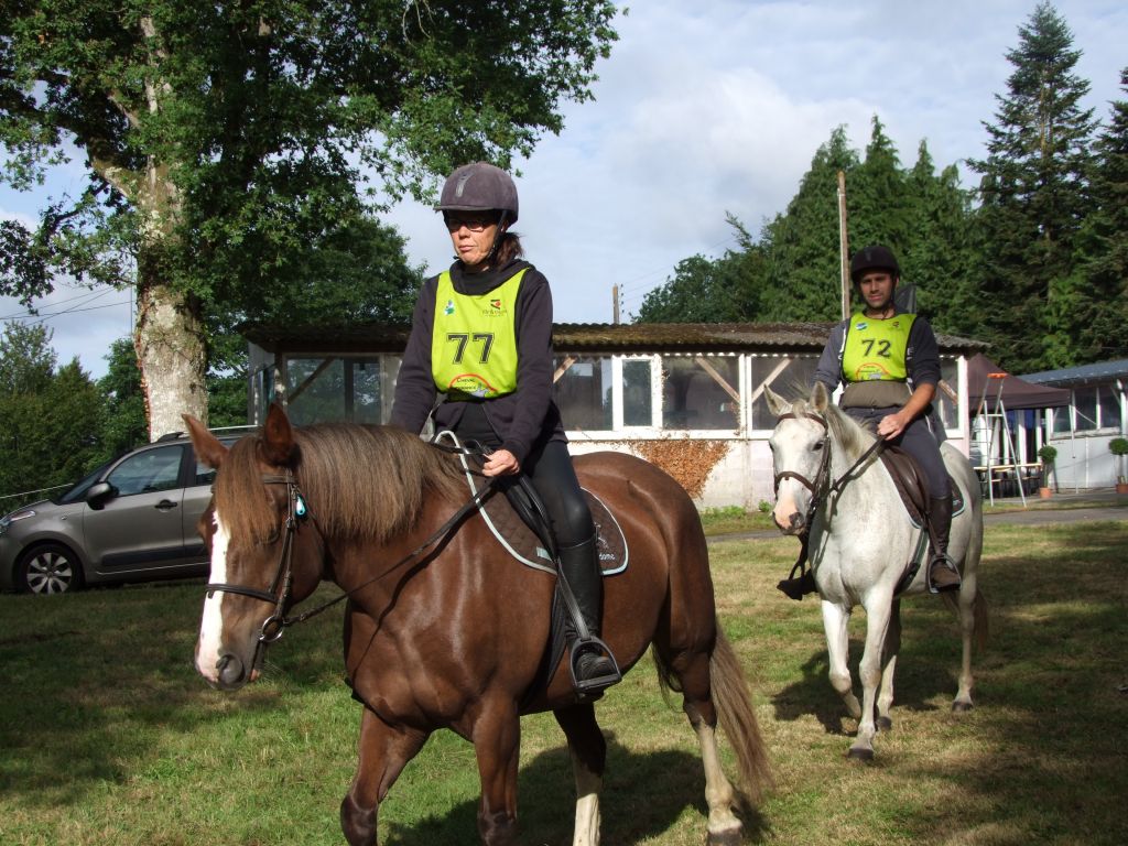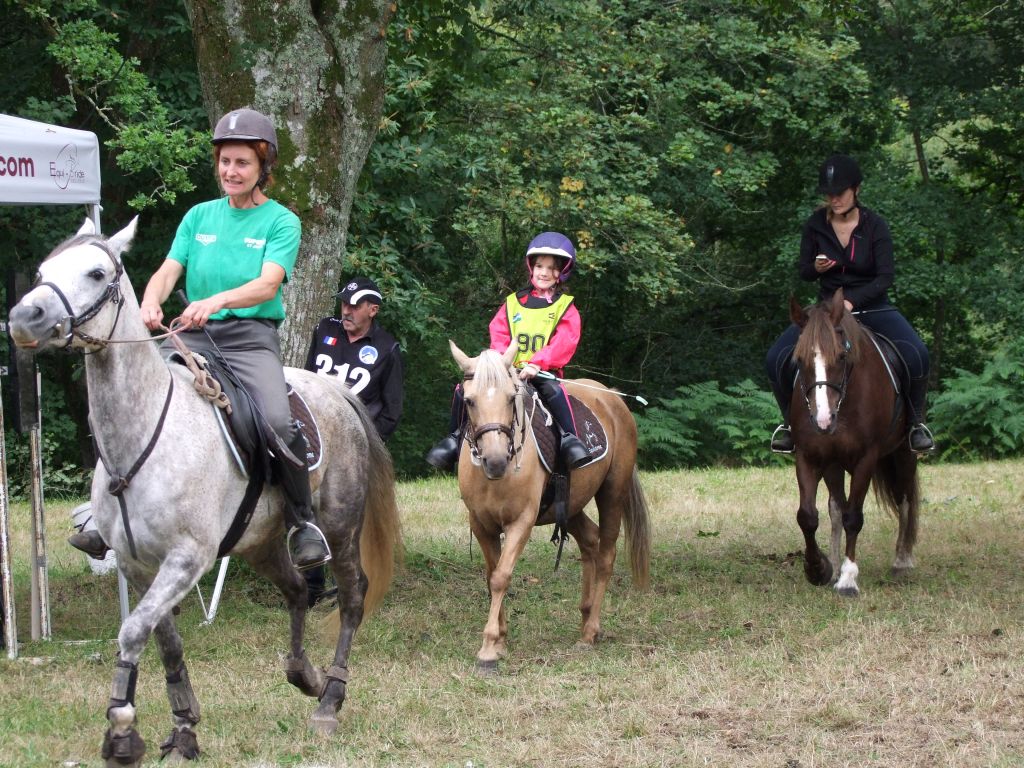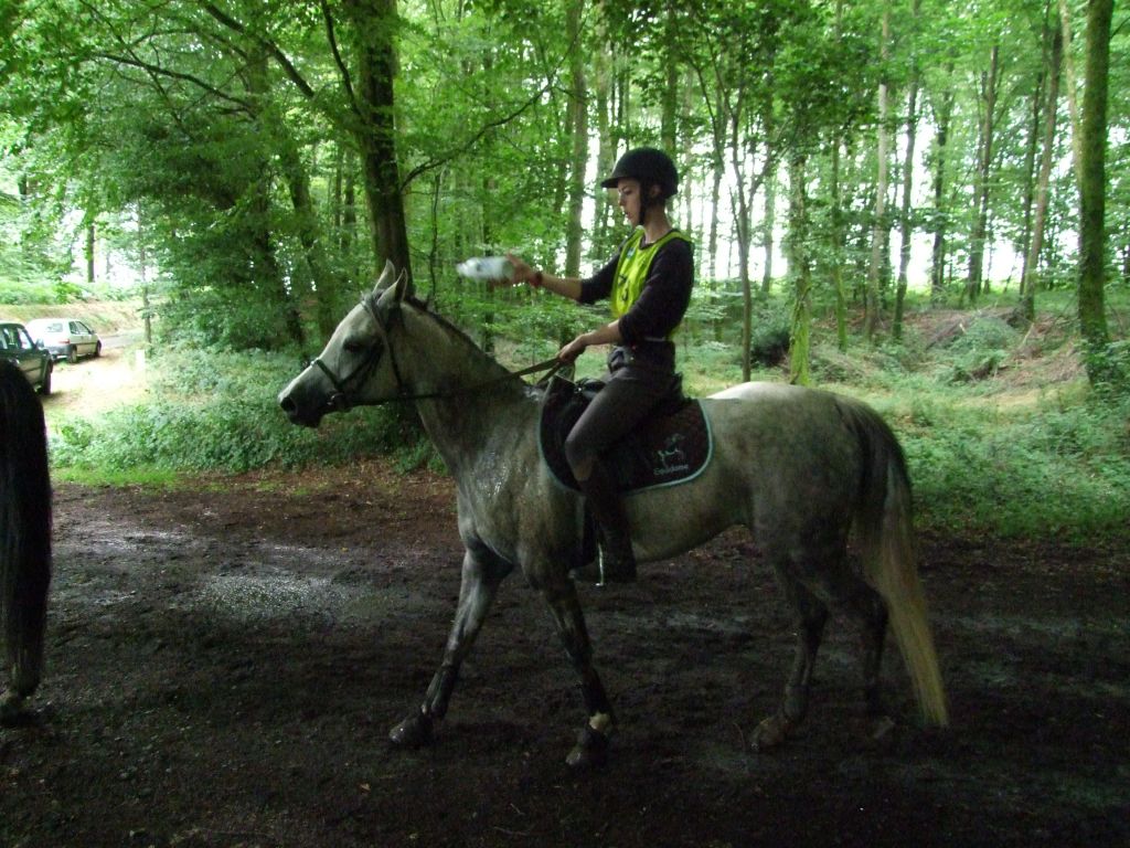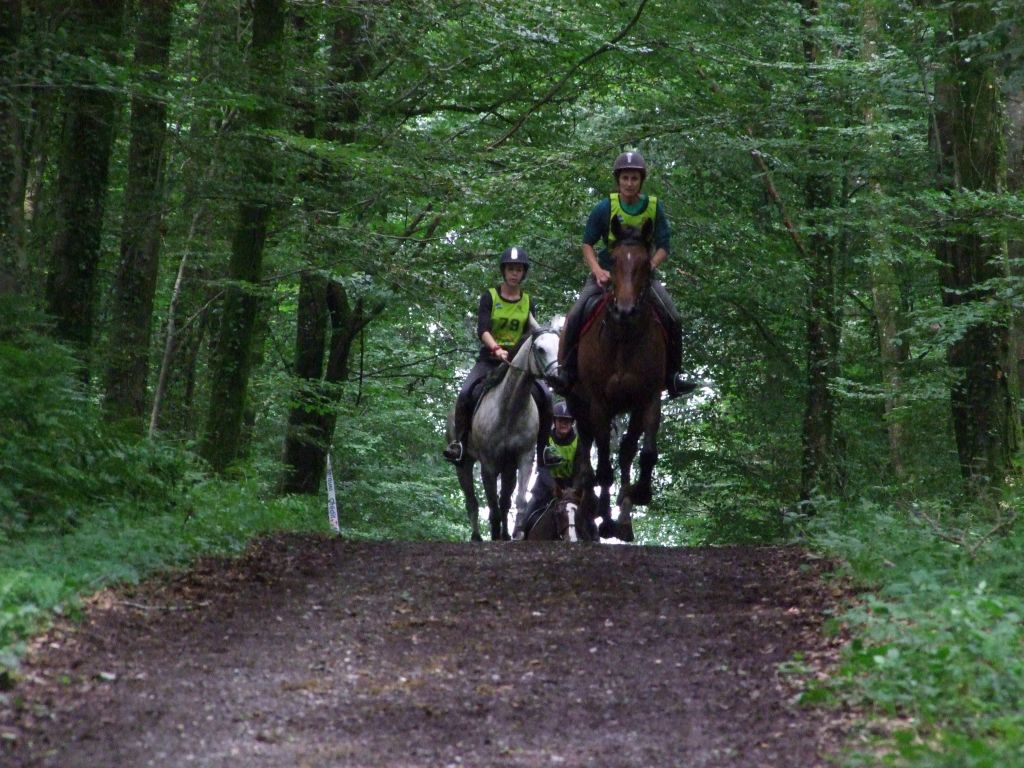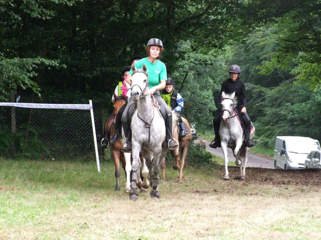 Une superbe journée passée en compagnie de notre petite équipe équidomienne ! un lever aux aurores en raison du nombre de courses : une 20 kms rapide et deux 10 kms avec les plus jeunes. Mais un timing respecté à la perfection. Départ sur la 20 à 9h30 comme souhaité ! une jument de tête ( Thaïs ) parfaite : chaude dans son corps mais froide dans sa tête ! un petit moment de solitude dans ma tête mais aussi dans celle d'Olivier incapable d'additionner 1h24 à 9h30 ( chez nous 10h44 lol, on dira que c'est la fatigue de l'année ). Heureusement, du retard pris en raison des passages délicats dans les sous bois ( merci Dame la pluie en juillet ) retard qui m'a incité à faire les derniers kms dans un galop soutenu; ligne franchie avec seulement une petite minute de retard par rapport au 15 km/h donc à 10h55 ( coup de chance ).