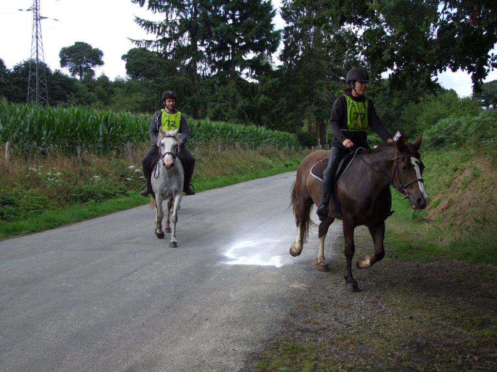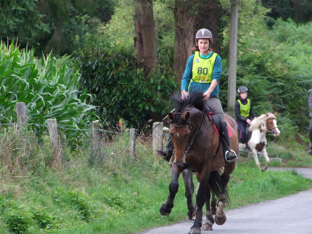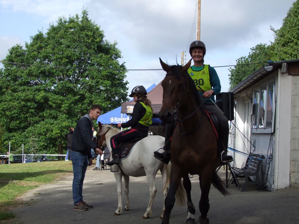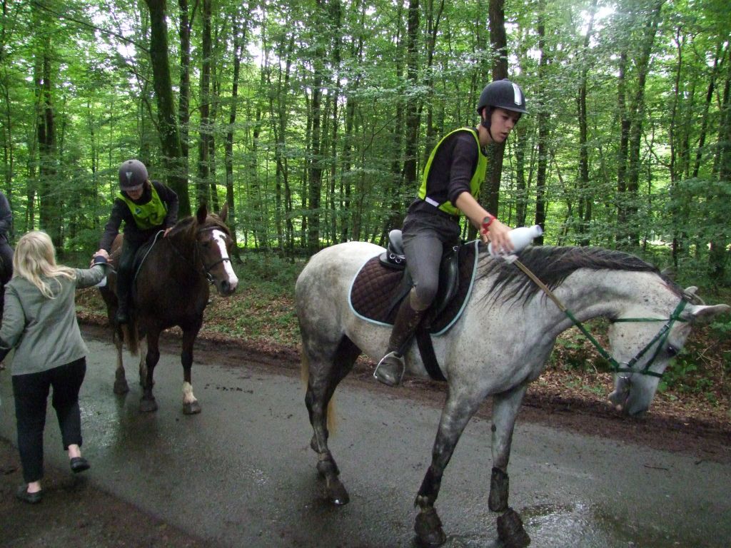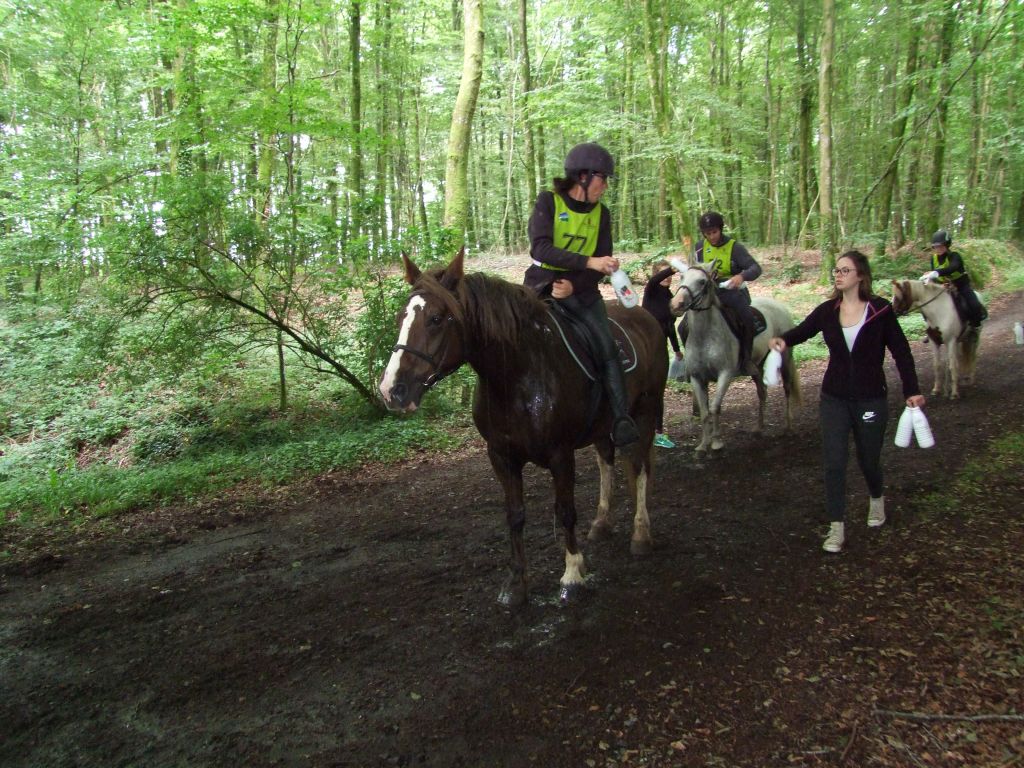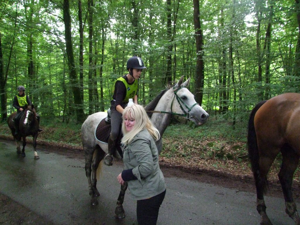 Une superbe journée passée en compagnie de notre petite équipe équidomienne ! un lever aux aurores en raison du nombre de courses : une 20 kms rapide et deux 10 kms avec les plus jeunes. Mais un timing respecté à la perfection. Départ sur la 20 à 9h30 comme souhaité ! une jument de tête ( Thaïs ) parfaite : chaude dans son corps mais froide dans sa tête ! un petit moment de solitude dans ma tête mais aussi dans celle d'Olivier incapable d'additionner 1h24 à 9h30 ( chez nous 10h44 lol, on dira que c'est la fatigue de l'année ). Heureusement, du retard pris en raison des passages délicats dans les sous bois ( merci Dame la pluie en juillet ) retard qui m'a incité à faire les derniers kms dans un galop soutenu; ligne franchie avec seulement une petite minute de retard par rapport au 15 km/h donc à 10h55 ( coup de chance ).