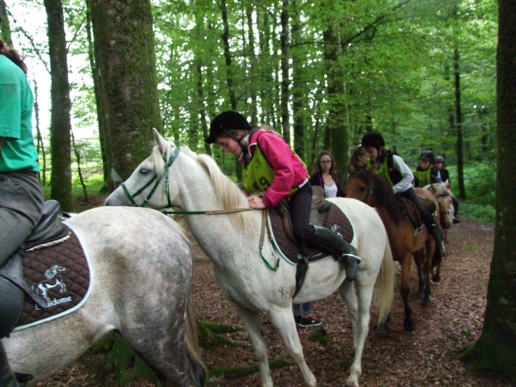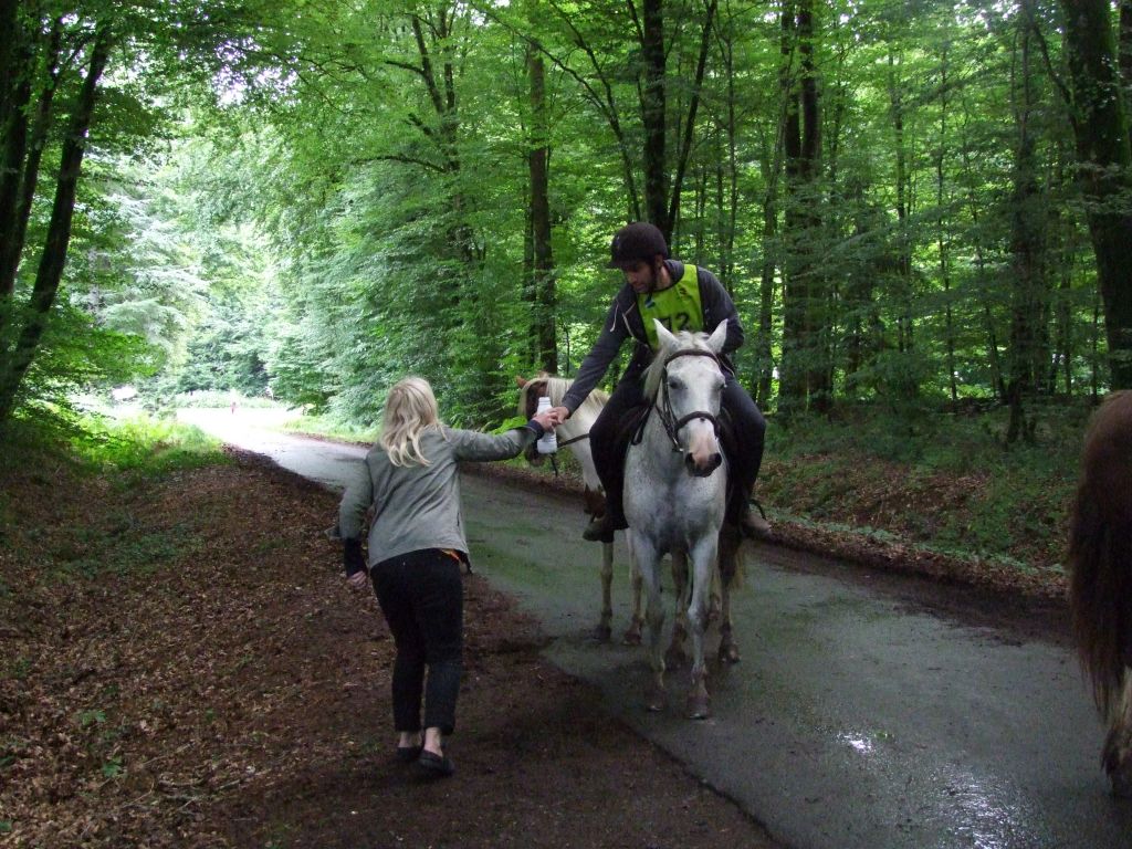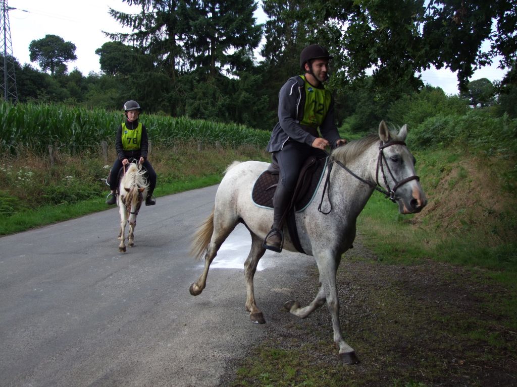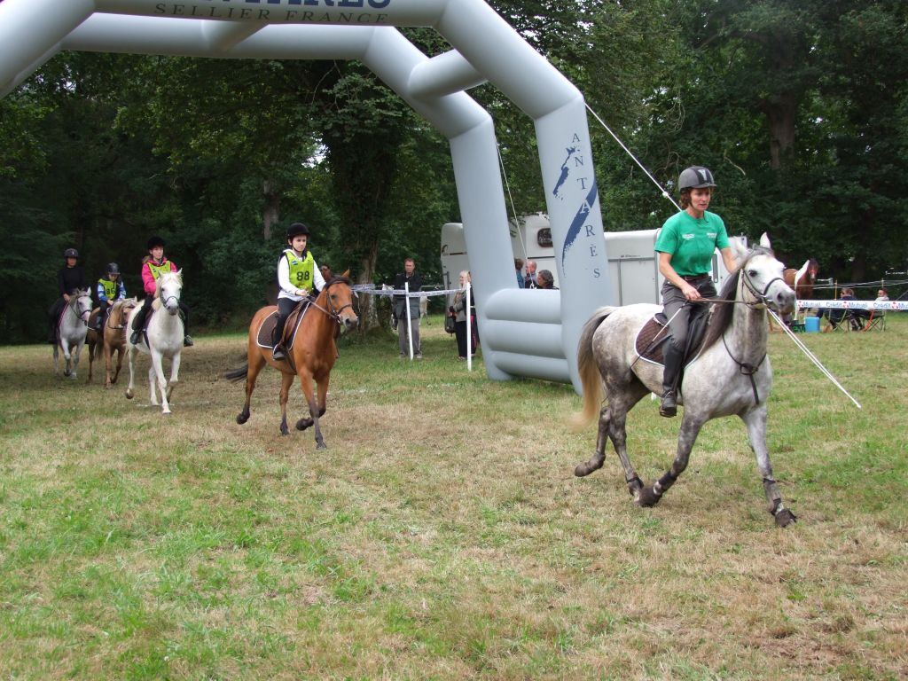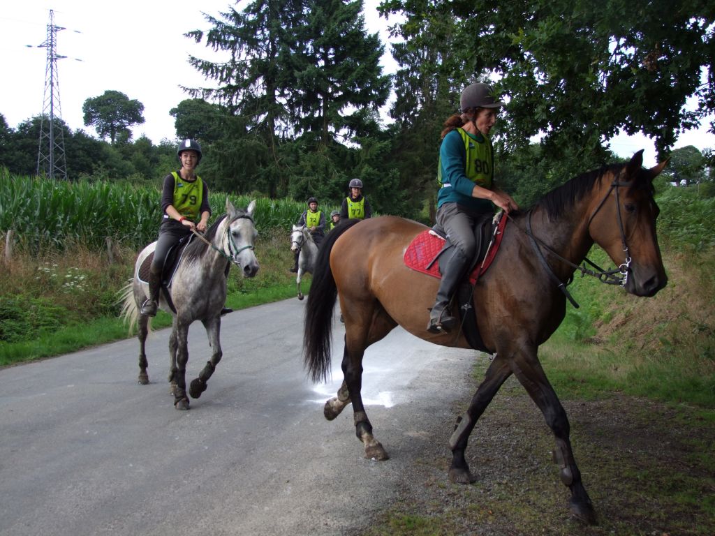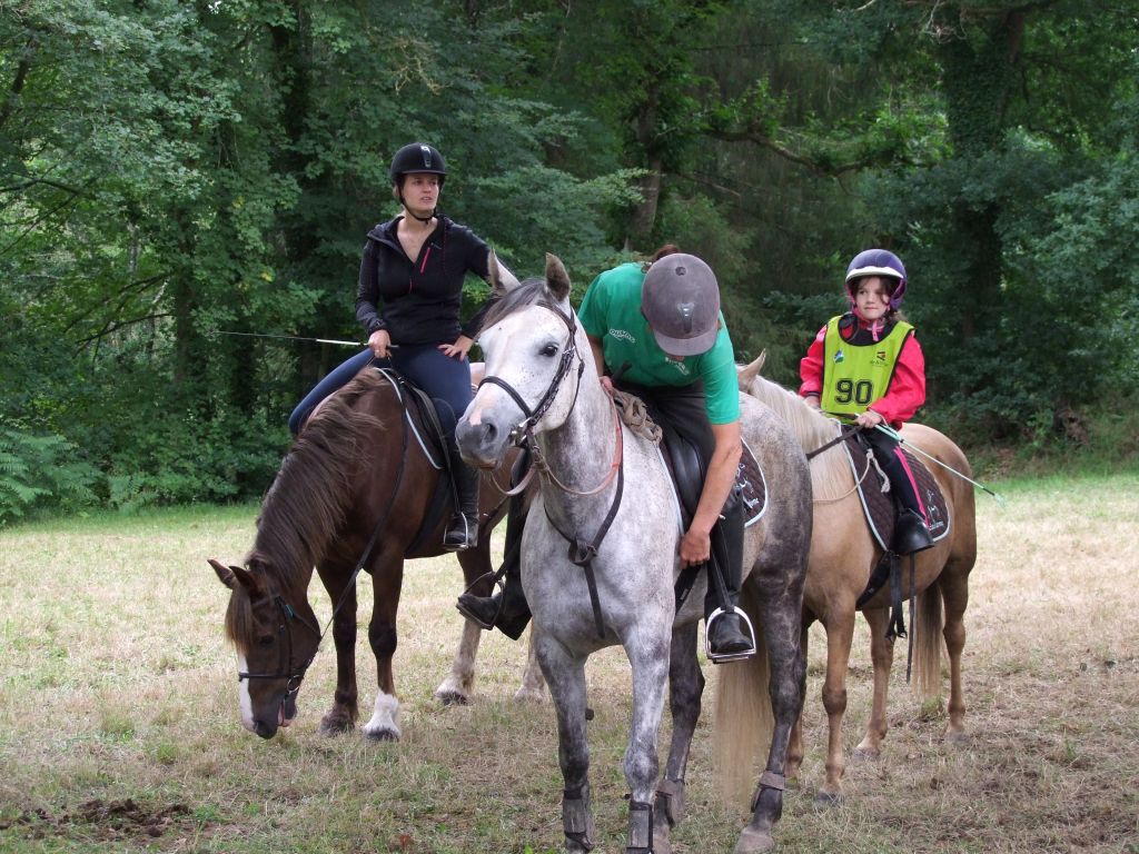 Une superbe journée passée en compagnie de notre petite équipe équidomienne ! un lever aux aurores en raison du nombre de courses : une 20 kms rapide et deux 10 kms avec les plus jeunes. Mais un timing respecté à la perfection. Départ sur la 20 à 9h30 comme souhaité ! une jument de tête ( Thaïs ) parfaite : chaude dans son corps mais froide dans sa tête ! un petit moment de solitude dans ma tête mais aussi dans celle d'Olivier incapable d'additionner 1h24 à 9h30 ( chez nous 10h44 lol, on dira que c'est la fatigue de l'année ). Heureusement, du retard pris en raison des passages délicats dans les sous bois ( merci Dame la pluie en juillet ) retard qui m'a incité à faire les derniers kms dans un galop soutenu; ligne franchie avec seulement une petite minute de retard par rapport au 15 km/h donc à 10h55 ( coup de chance ).