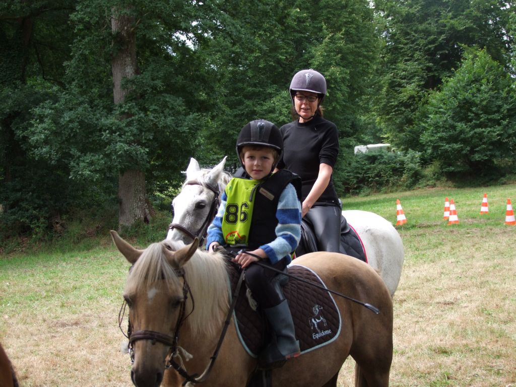 Côté 10 kms en 10/12 kms/h, une belle petite équipe scindée en 2 : Sur 5 cavaliers: Mila termine première avec Katia avec franchement une petite cavalière très à l'écoute des consignes et qui avec seulement une année d'équitation a très bien géré le trot mais surtout le galop ( un énorme bravo !!! ), Célestin termine 2nd ( bravo Célestin ) juste derrière Mila : classement très serré puisque katia récupère à 40 avec Mila et 39 avec Célestin mais 2 mns plus rapides avec Mila. La vitesse l'emporte. Un beau podium à nouveau avec nos 2 petits cavaliers âgés de 7 ans. Une autre cavalière prend la 3ème place grr et juste derrière se classe Anaïs avec Tornado ( récup à 48 bravo Anaïs pour cette première course ), 5ème se classent Léo et Maëline ( récup également à 48 et également une belle course pour une première ! bravo Maëline ! ).