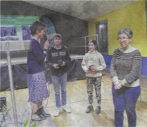 Marie-Claire Boucher a remis la médaille communale à Célestin et Mila accompagnée d'Emmanuelle Rousset, vice-présidente du conseil départemental et élue membre du groupe exécutif de l'agence départementale du Pays de Fougères.